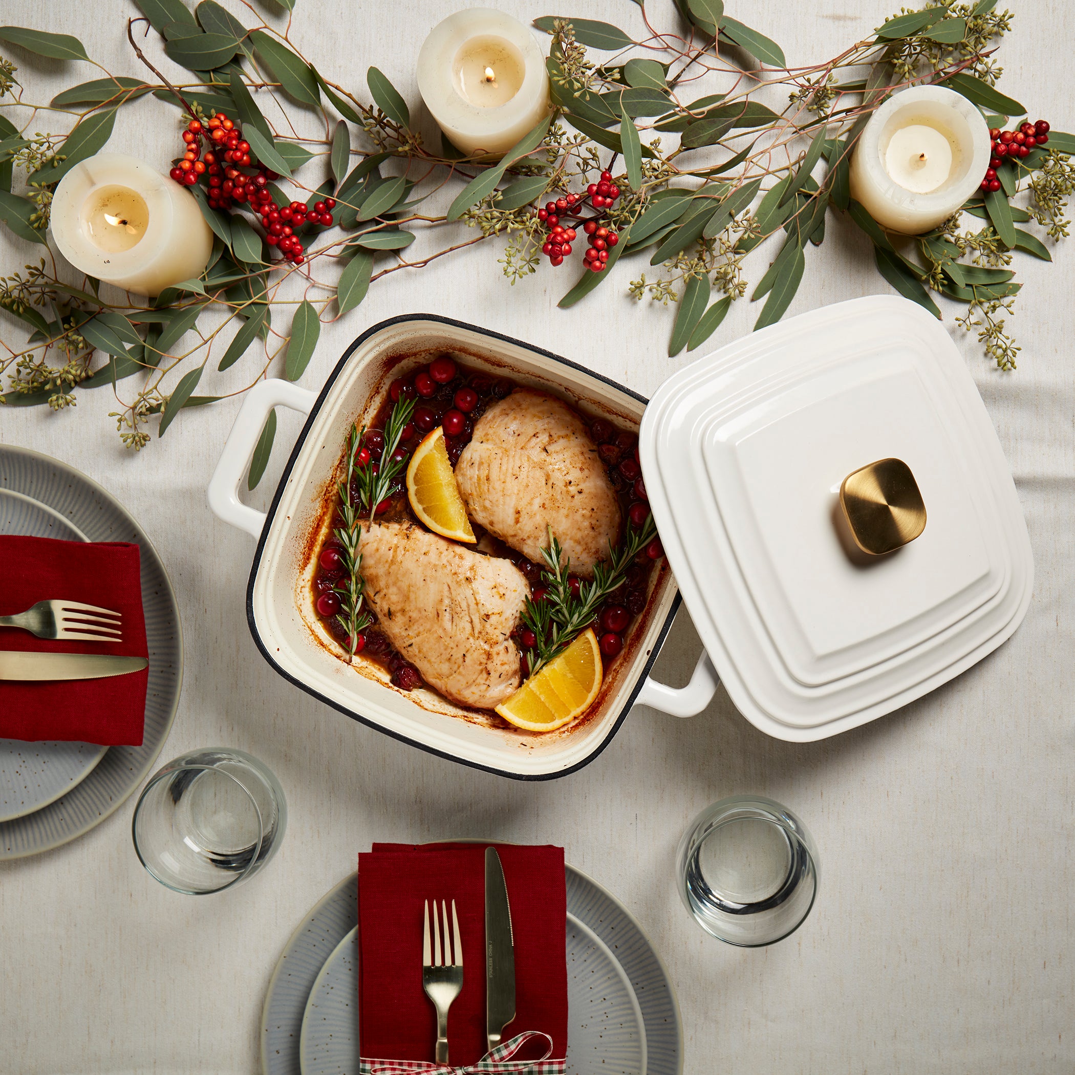 4-Quart Enameled Cast Iron Square Dutch Ovens, White