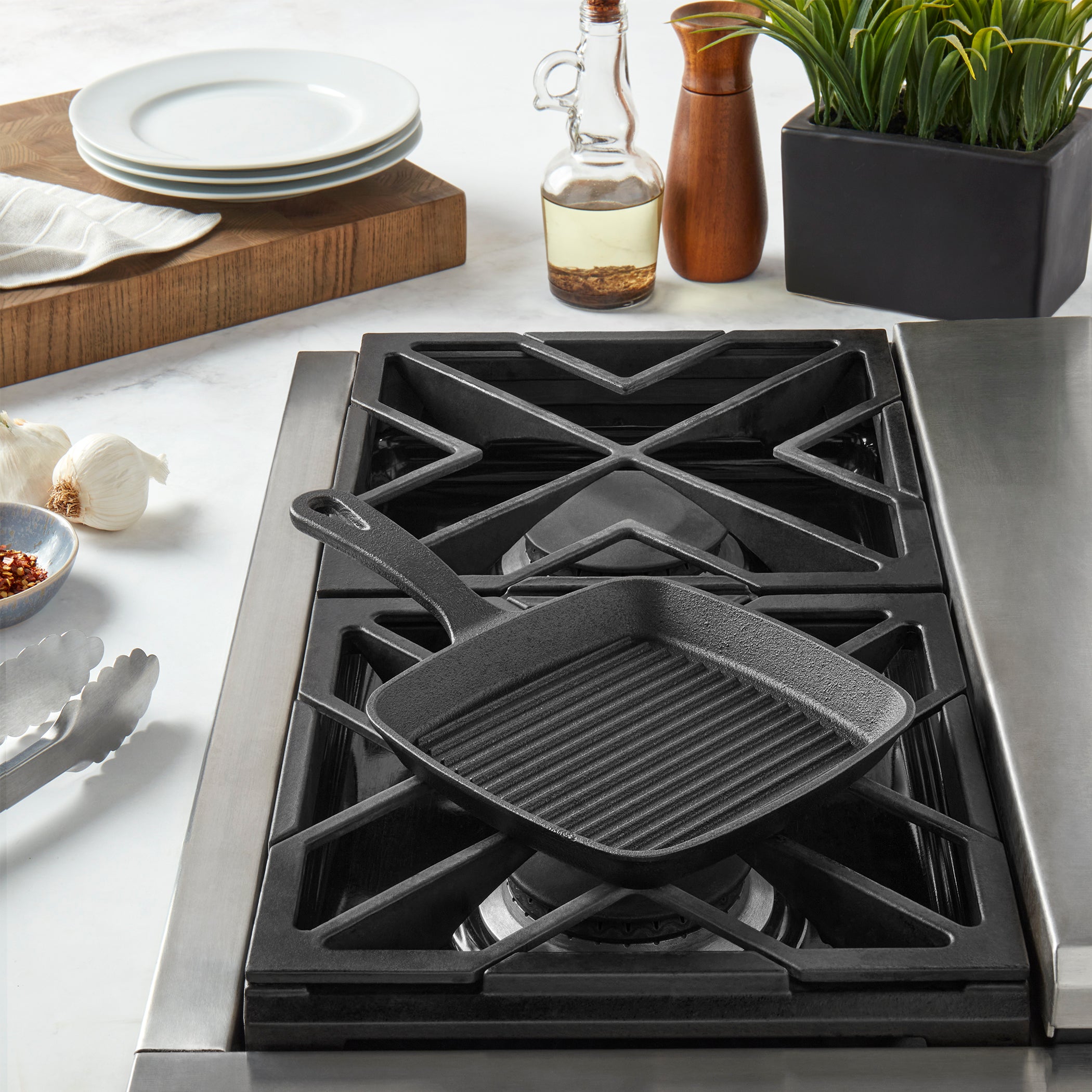 Smith & Clark presents high-quality cast iron pots and pans designed to become your go-to cookware for every recipe in your repertoire. Built for decades of delicious meals, this small, 6.75-inch cast iron grill pan features a pre-seasoned coating for a natural and easy food release and an assist handle.