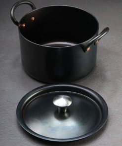 Hand-spun in south-eastern England, Alex Pole’s take on the classic casserole dish enjoys the heat retention and versatility of carbon steel, perfect for even heating and roasting. With solid, forged steel handles secured by oversized copper rivets, the casserole dish, including lid, can be used on any type of stove, in the oven, outside on the grill, or directly in the hot coals. Perfect for searing, grilling, and frying both vegetables and proteins, carbon steel is naturally non-stick, each pan arriving pre-seasoned with rapeseed oil.