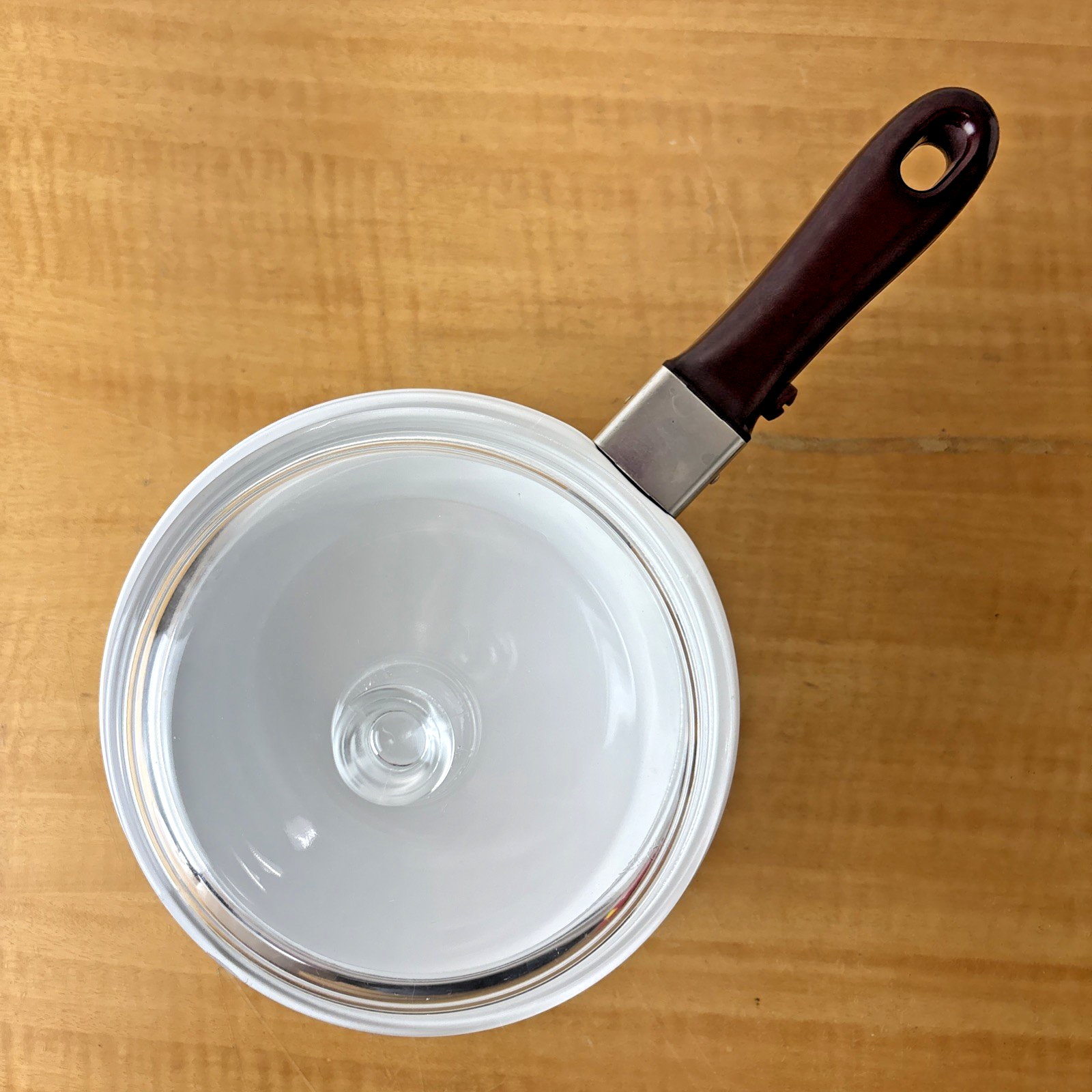 ACROFLAM FRANCE WHITE SWIRL 7″ INCHSAUCEPAN WITH LID & DETACHABLE HANDLE