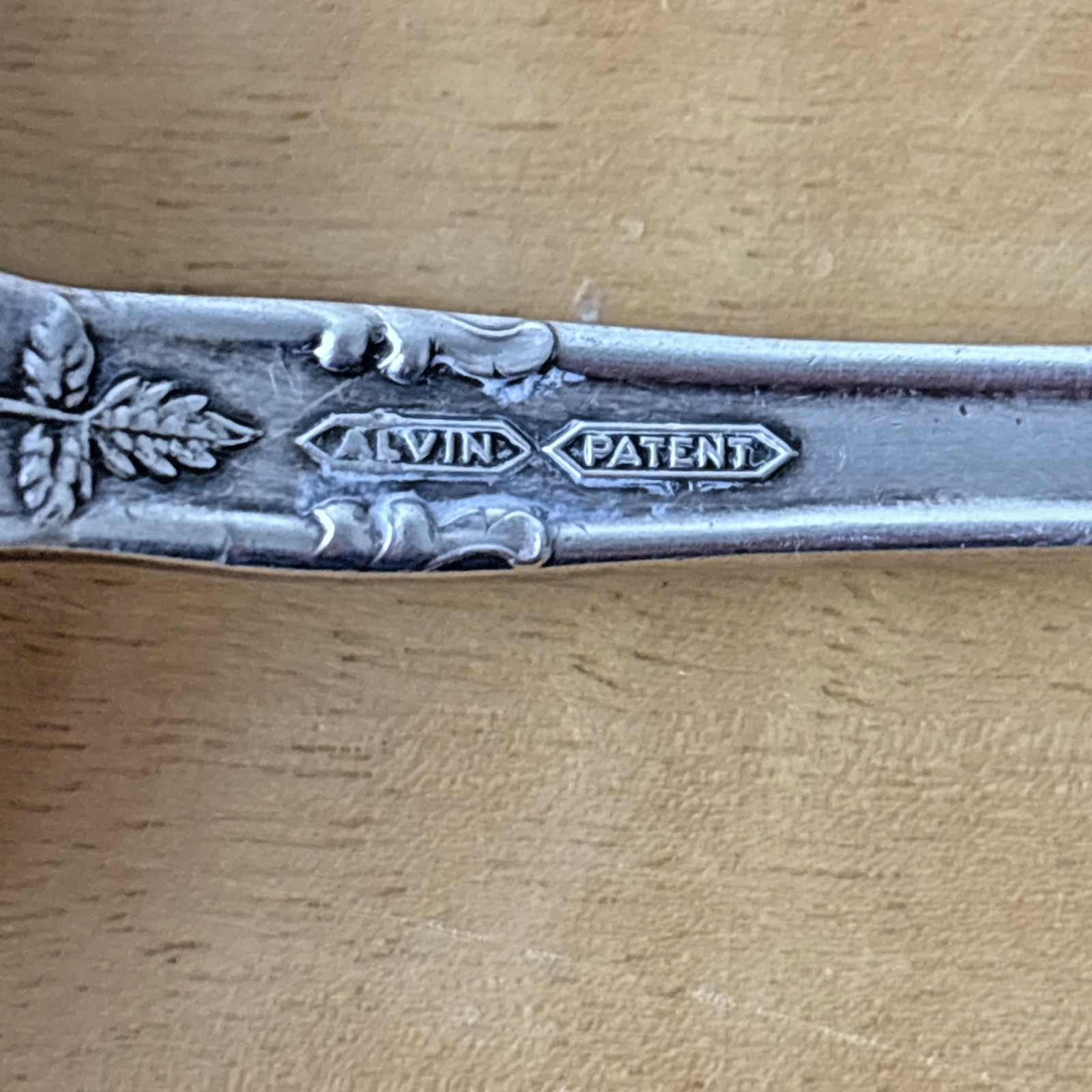 Alvin Patent Silver Plate Rose Pattern Patina Lovely 9″ inch Serving Spoon