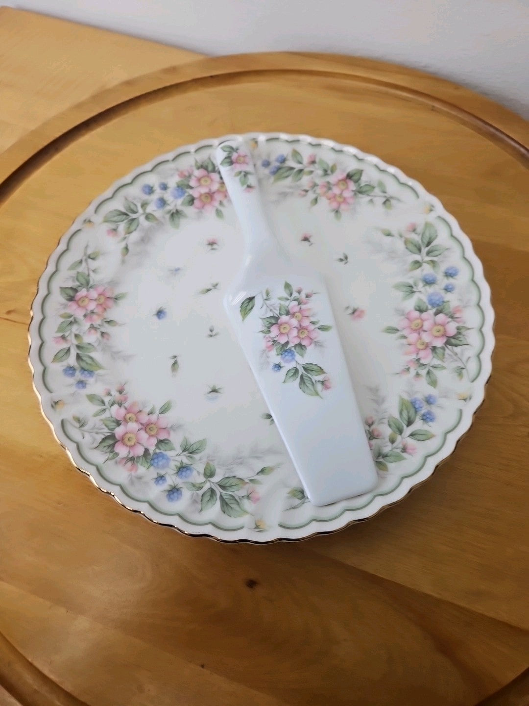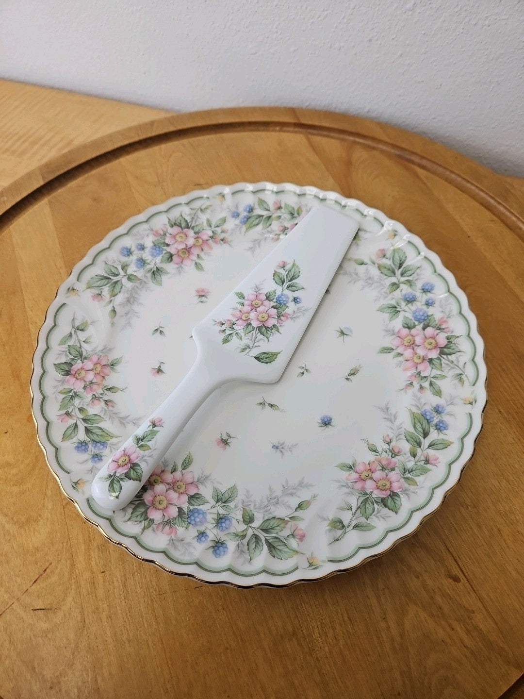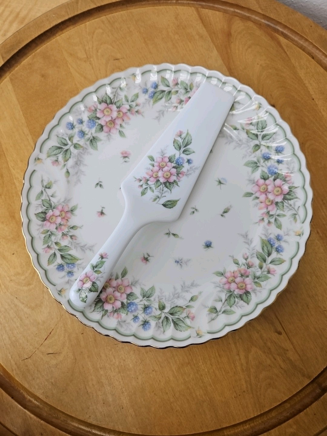 Amiel Exceed Bon Keito Japan Andrea by Sadek 10 3/4″ Floral Cake Plate Gold Trim