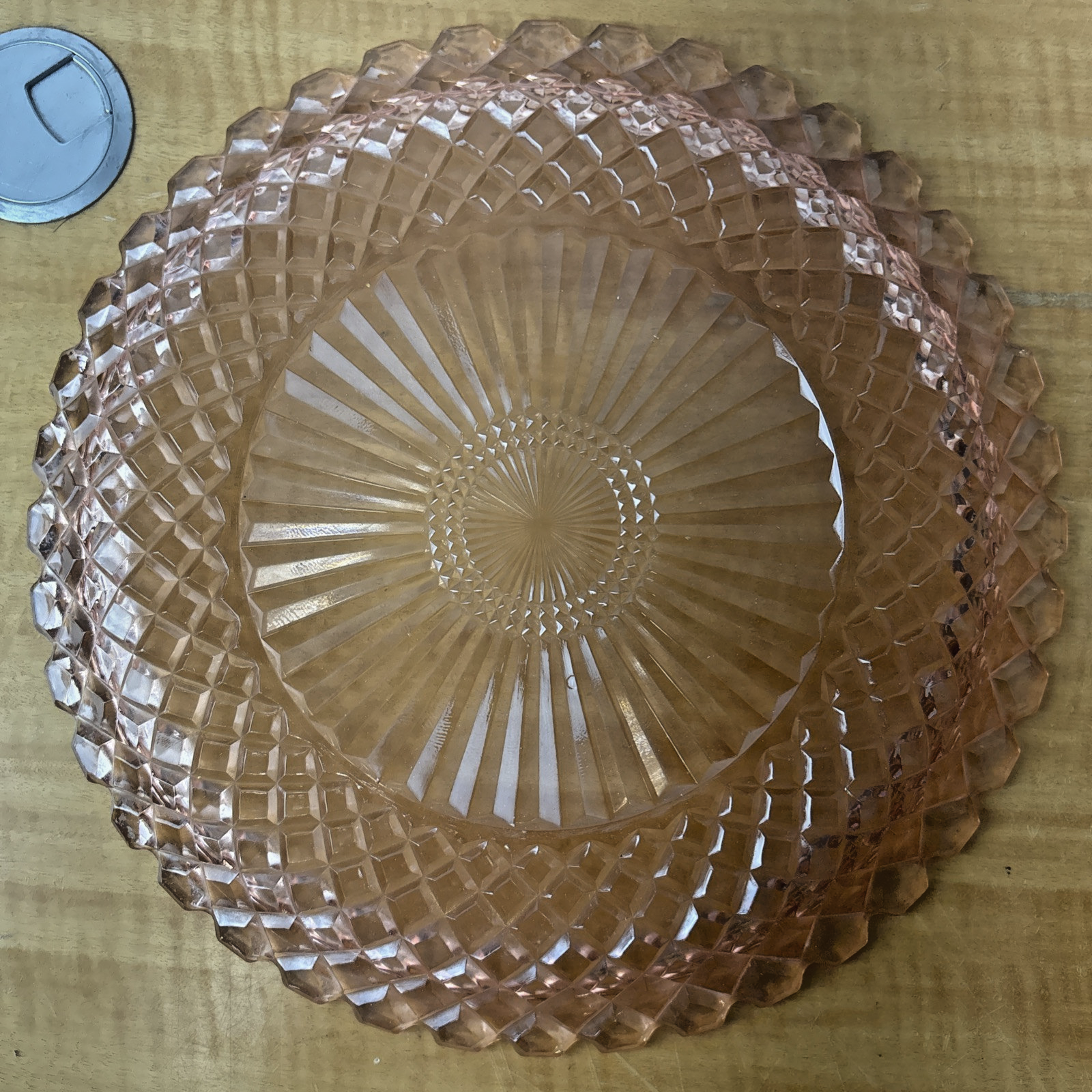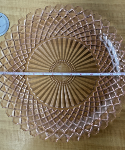 Anchor Hocking 14″ Round Pink Depression Glass Cake, Serving Platter / Dish