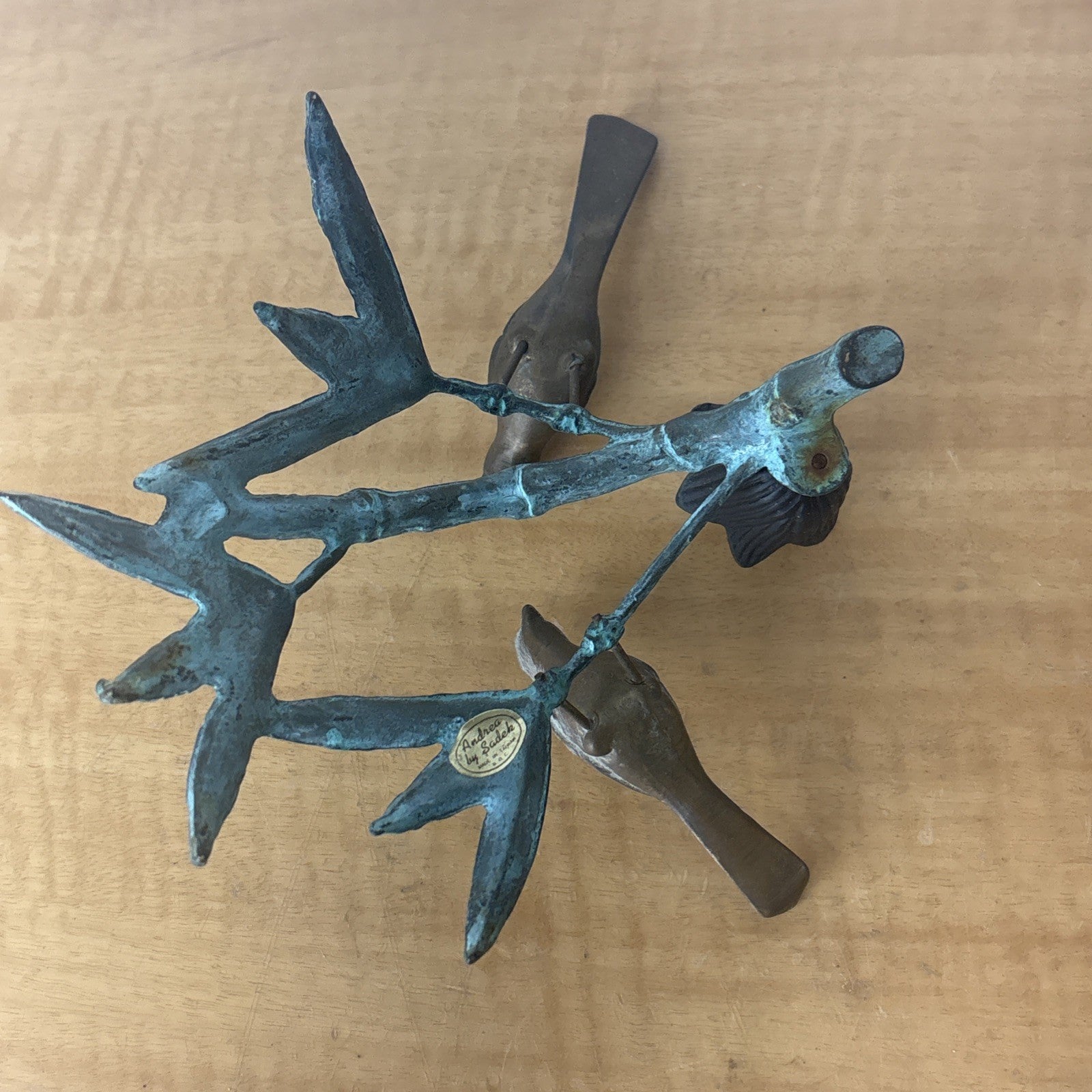 Andrea by Sadek Brass Metal Birds on Bamboo Ikebana Art Vase