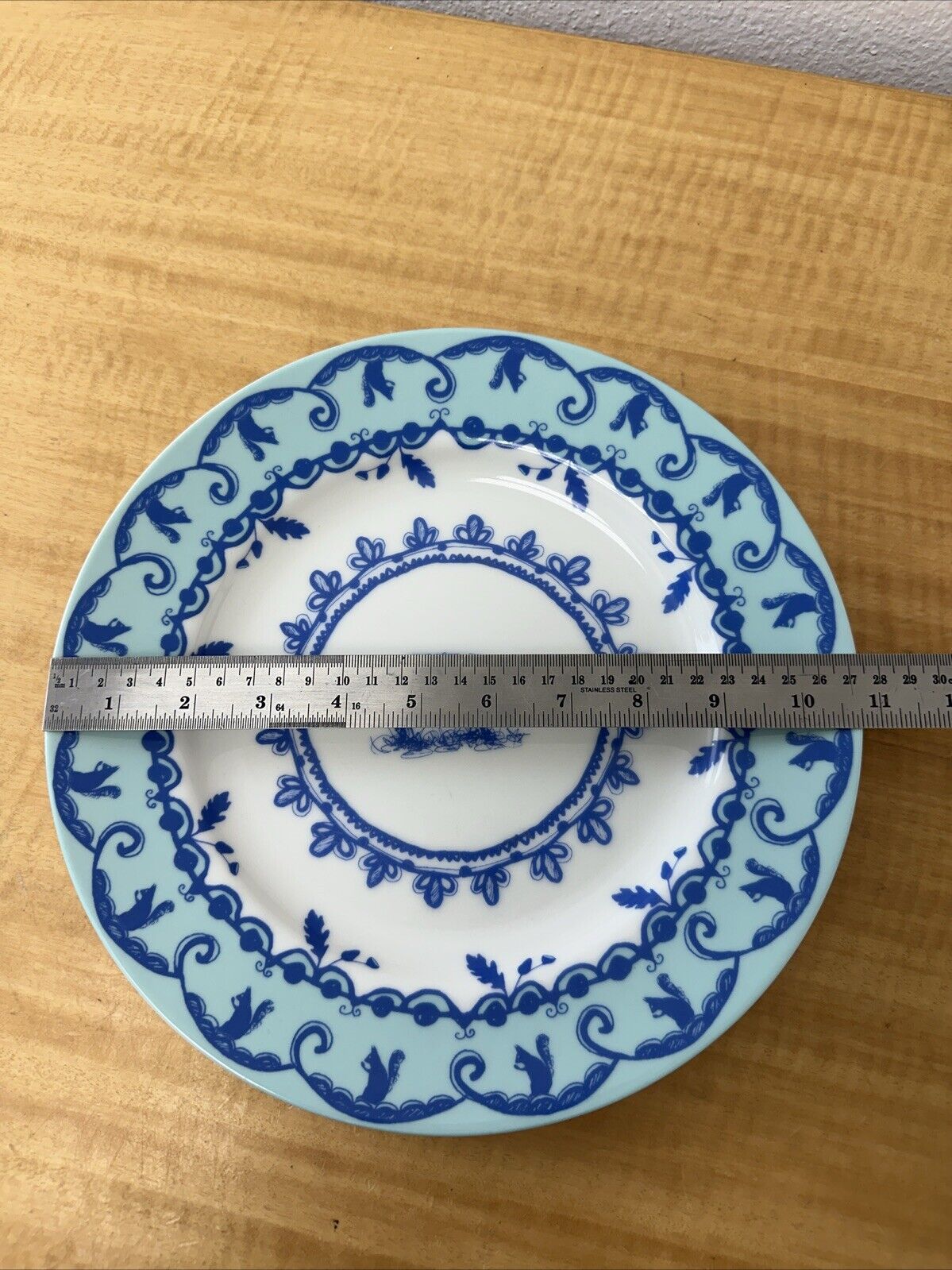 Anthropologie Dinner Plate Pig Squirrel Japan White Blue Decor Farmhouse Retired