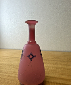 Antique 1880’s Pink Hand Blown Glass Floral Barbershop Bottle Pontil Marked Rare