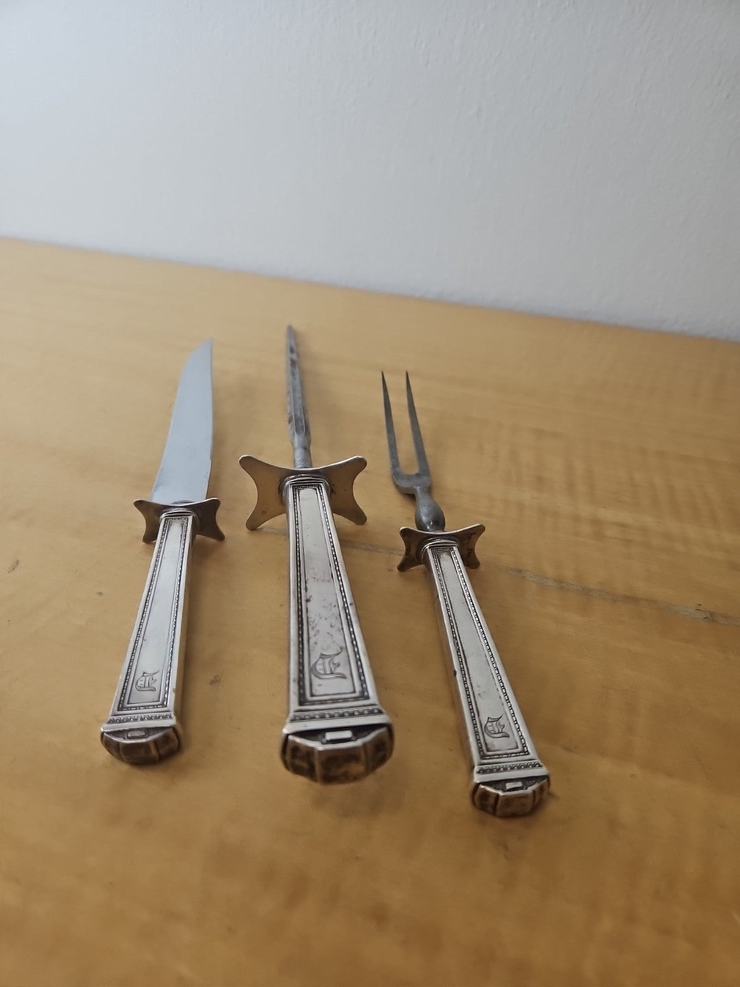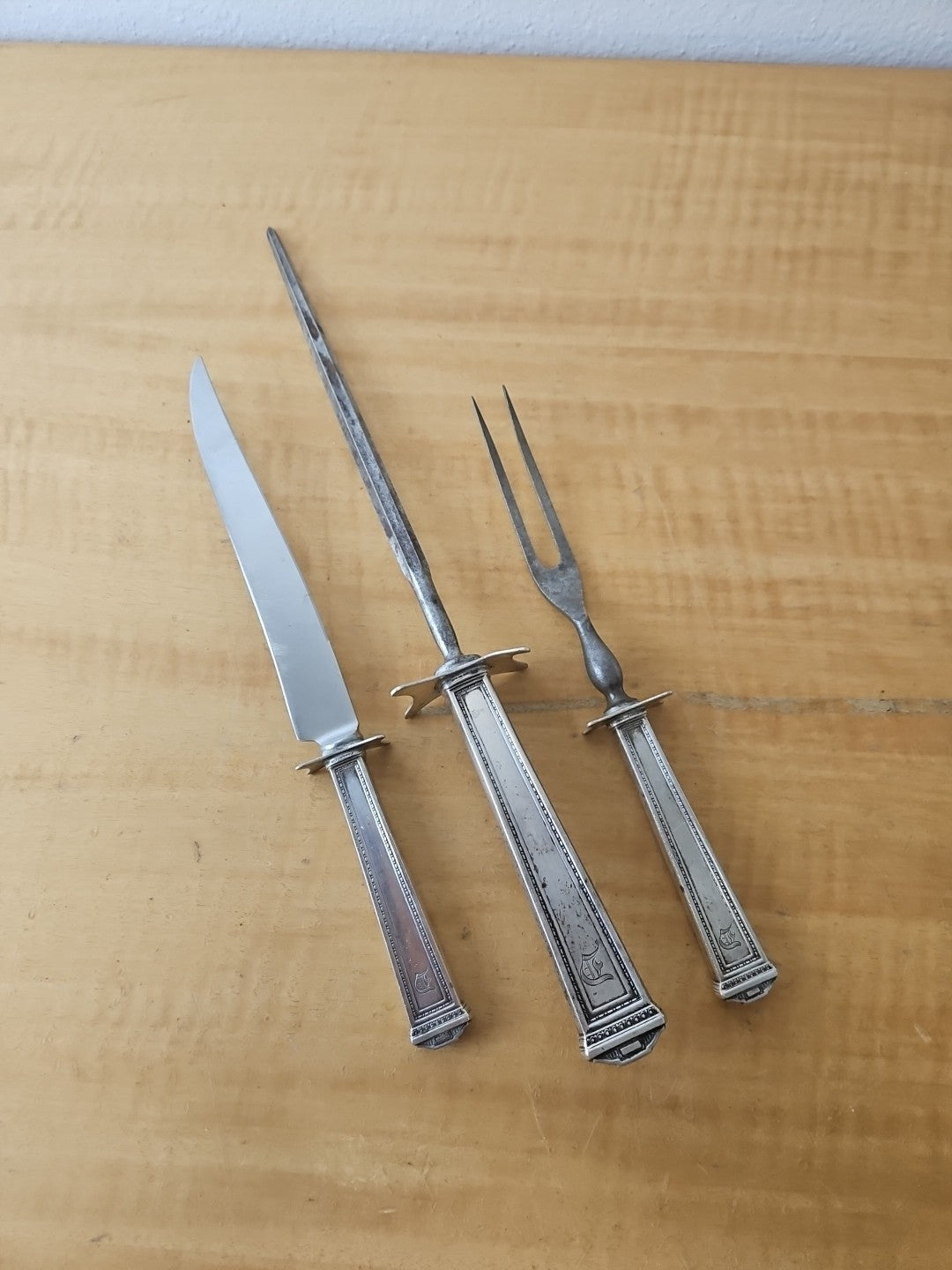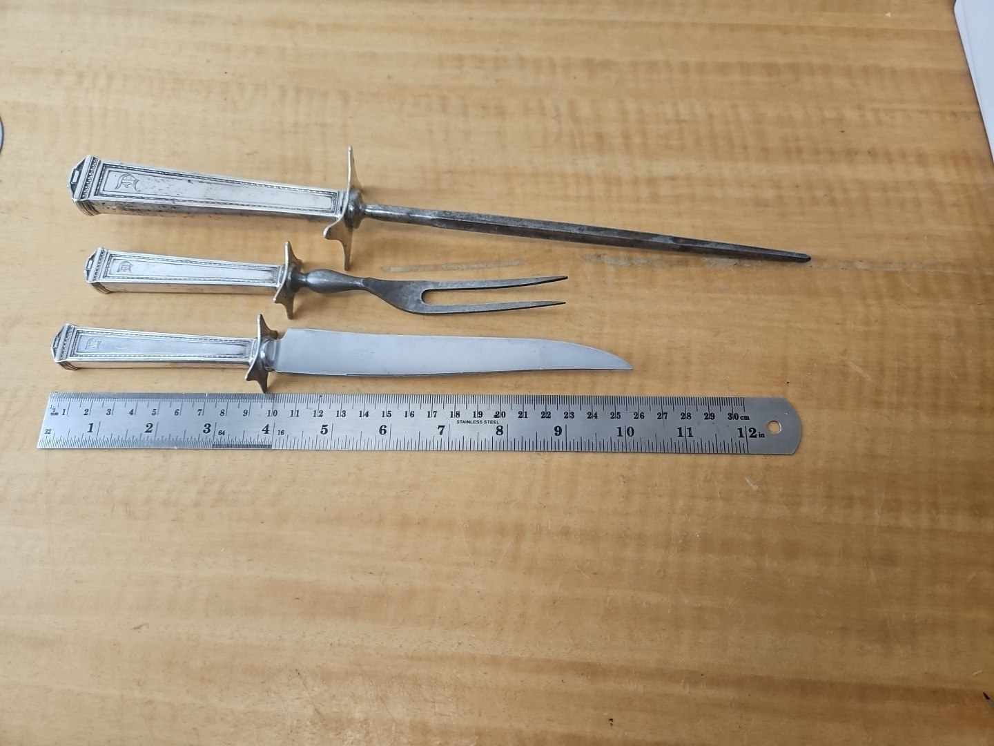 Antique 3-Piece Sterling Silver Handles Carving Set (Insico Stainless on Knife)