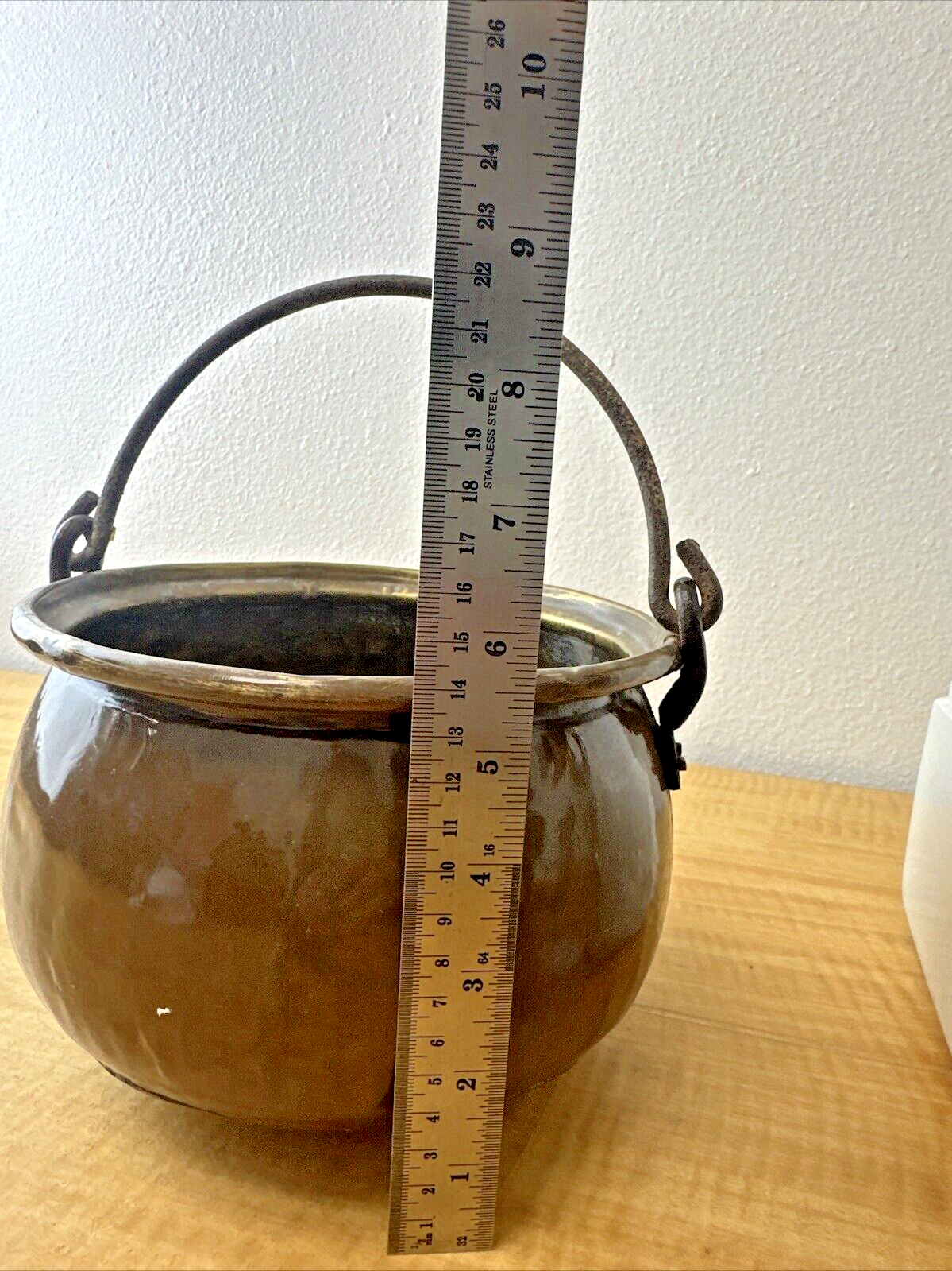 Antique Copper Cauldron Primitive Bucket Hanging Pot Kettle Hammered