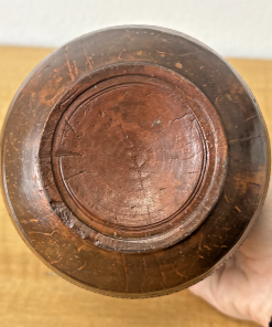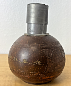 Antique Japanese Carved Coconut Saki Bottle 1920s Aluminum Lid