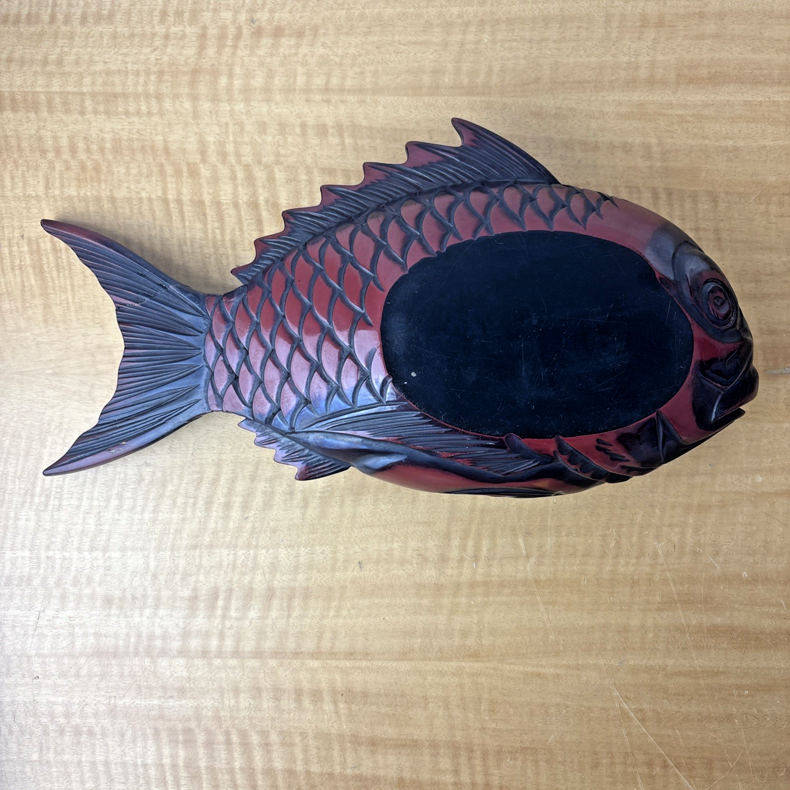 Antique Japanese Wooden Candy box Hand carving with Laquer SEA BREAM No Lid