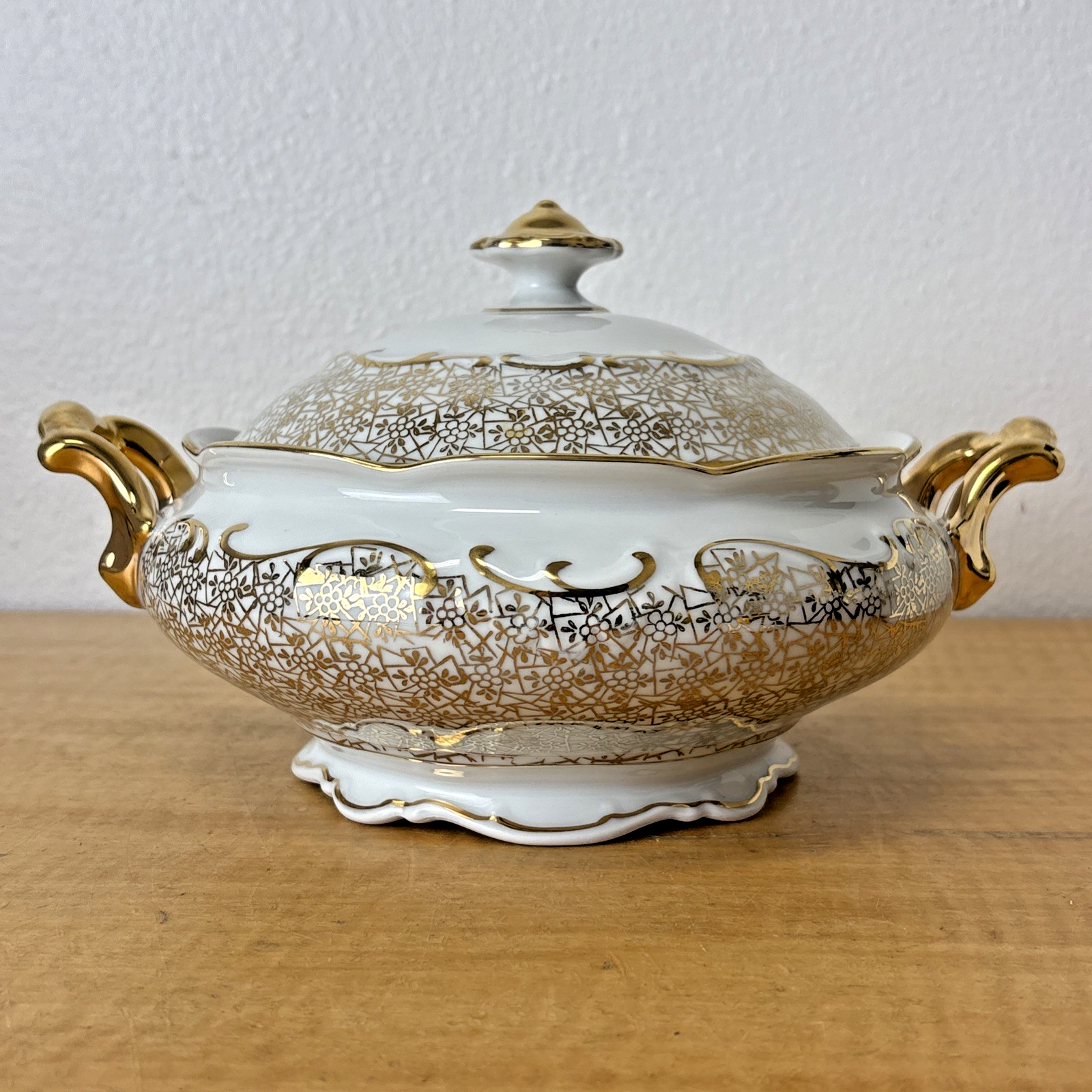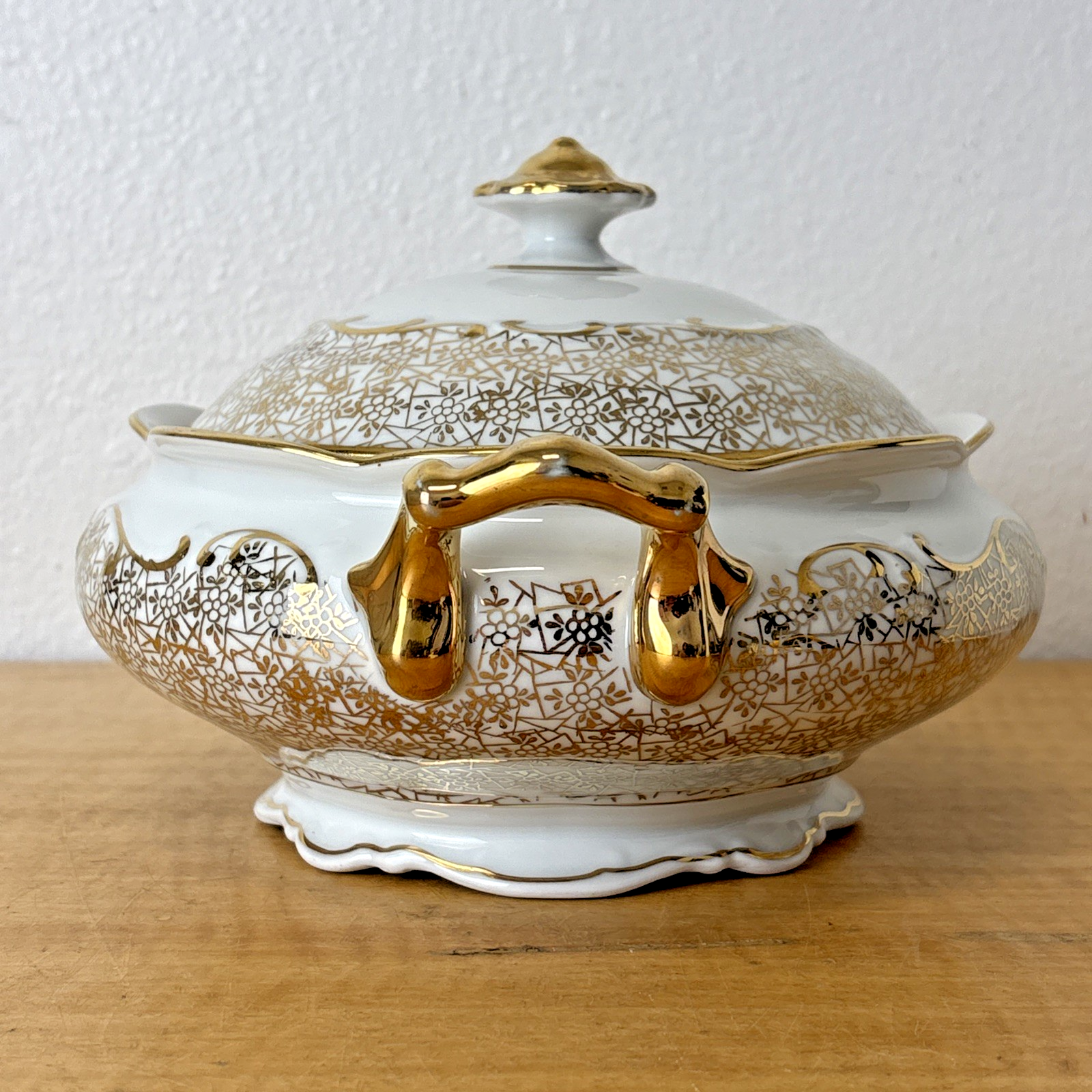 Antique PMB House of Dresden Gold Filigree Round Covered Vegetable Serving Dish