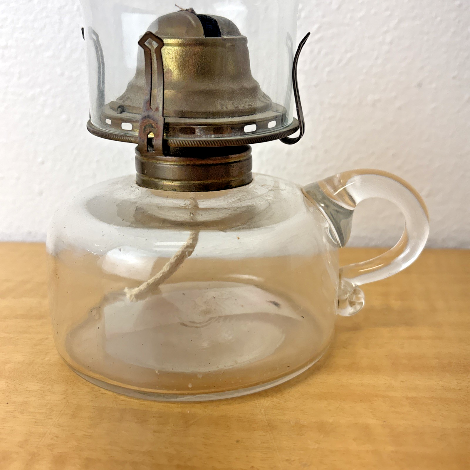 Antique Queen Anne No. 2 Glass Finger Hole Oil Lamp w/ Handle