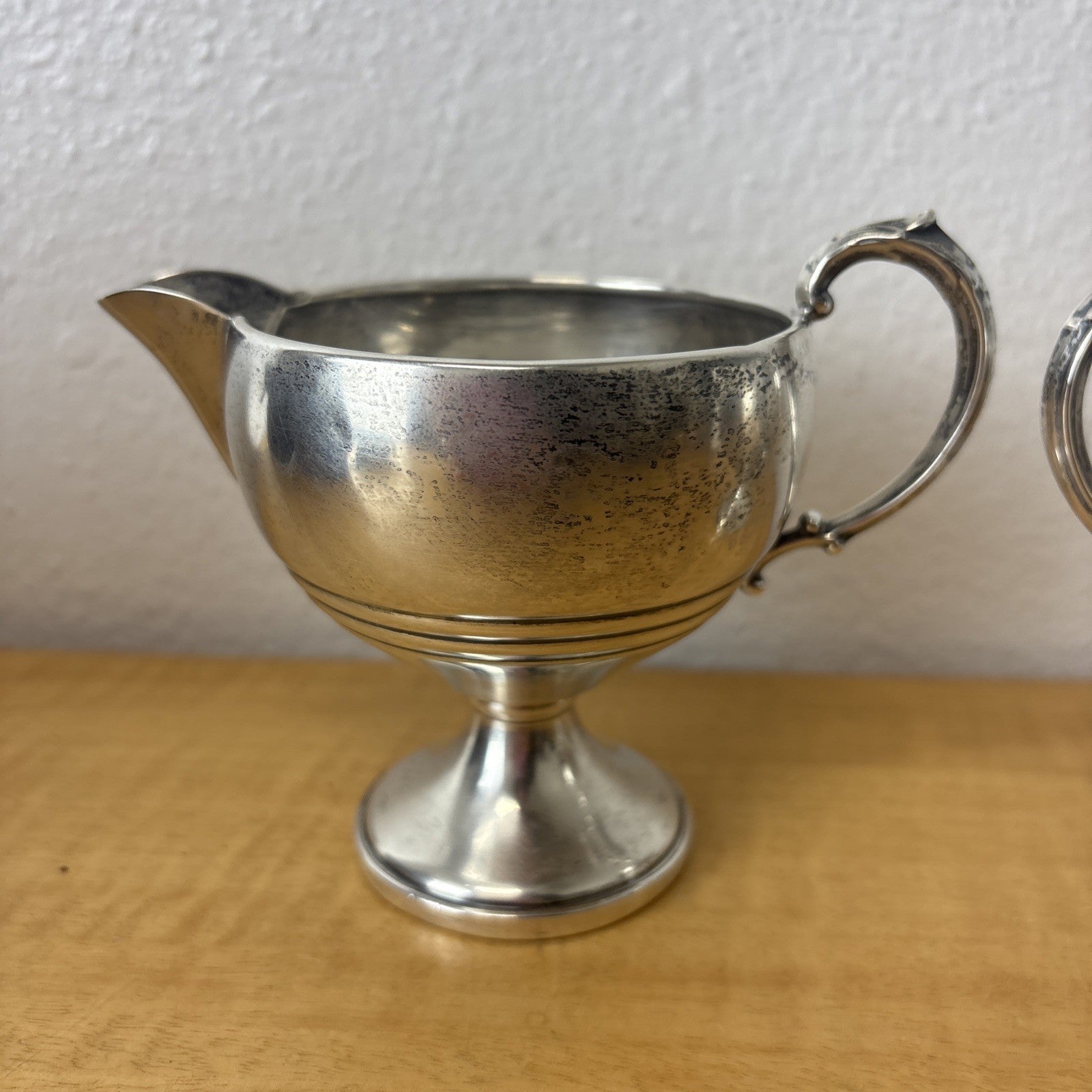 Antique Sterling Weighted 581 Creamer & Sugar Bowl 1940’s