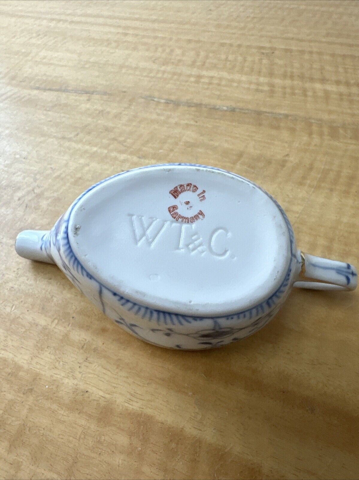Antique WT&C Blue Straw Flower Invalid Feeder