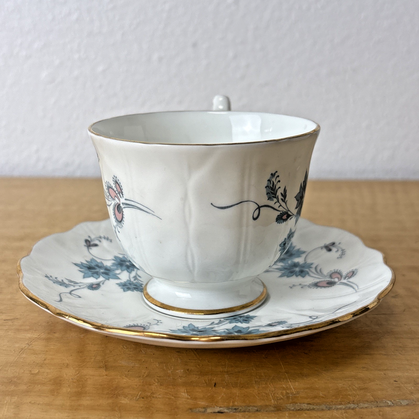 Aynsley Blue & Pink Floral Teacup & Saucer English Bone China