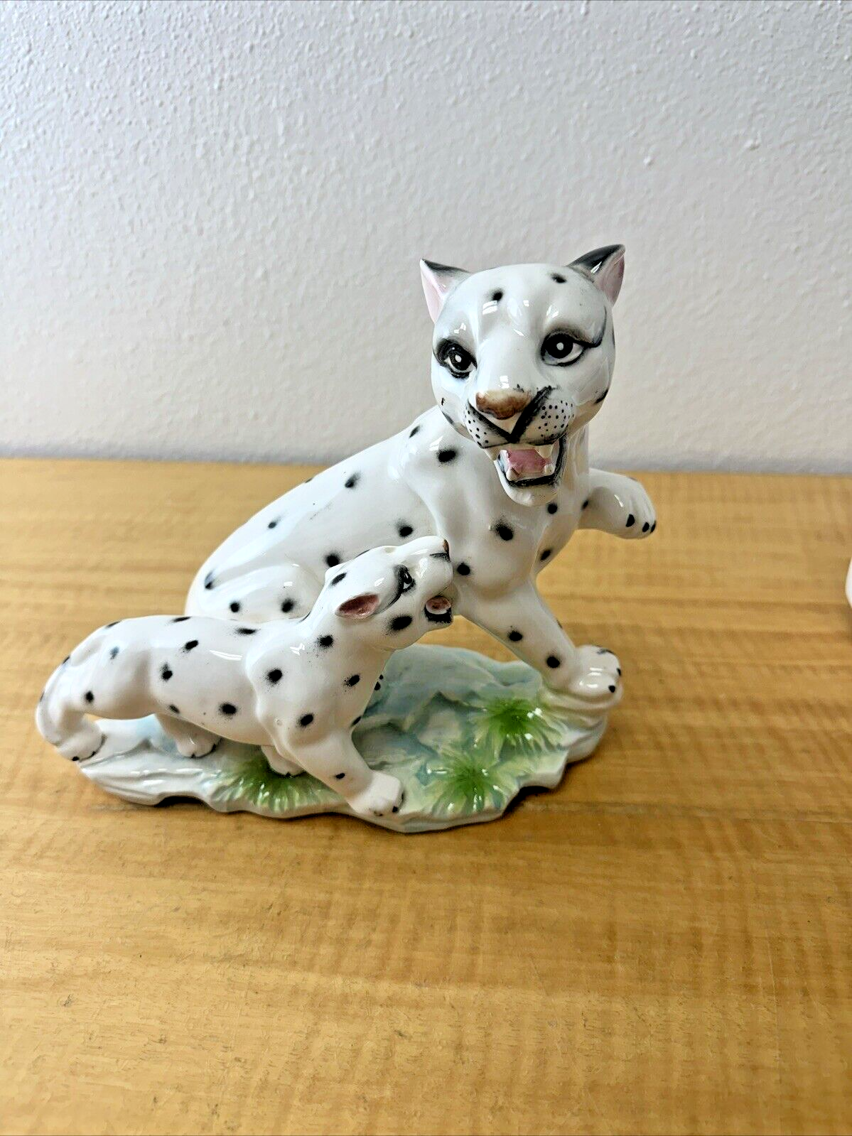 Big Cat Statue/White Leopard & Baby – Made in Japan