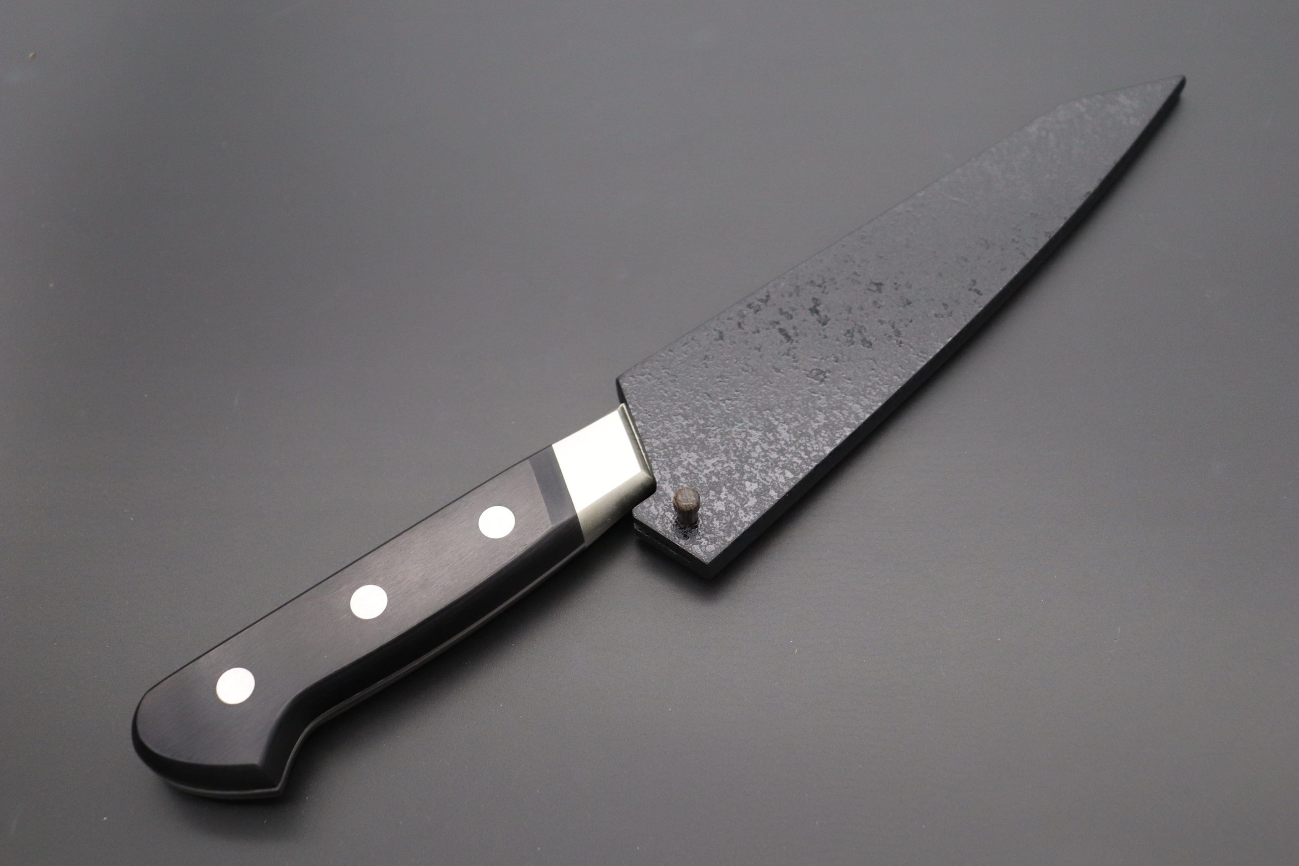 The Misono UX10 Series knives are one of the highest-quality professional stainless steel kitchen knives on the market and they feature a stylish, well balanced, slanted Nickel Silver bolster. This particular handcrafted Black Lacquered Wooden Saya has been specially customized to seamlessly fit the . It offers the best-possible fit for the UX10 No.741 Boning Knife and it is therefore the Saya we recommend for the knif.