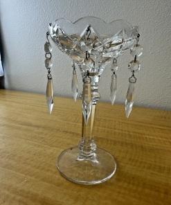 Bohemia Czech Republic Art Deco Clear Cut Mantle Candle Holder Prisms