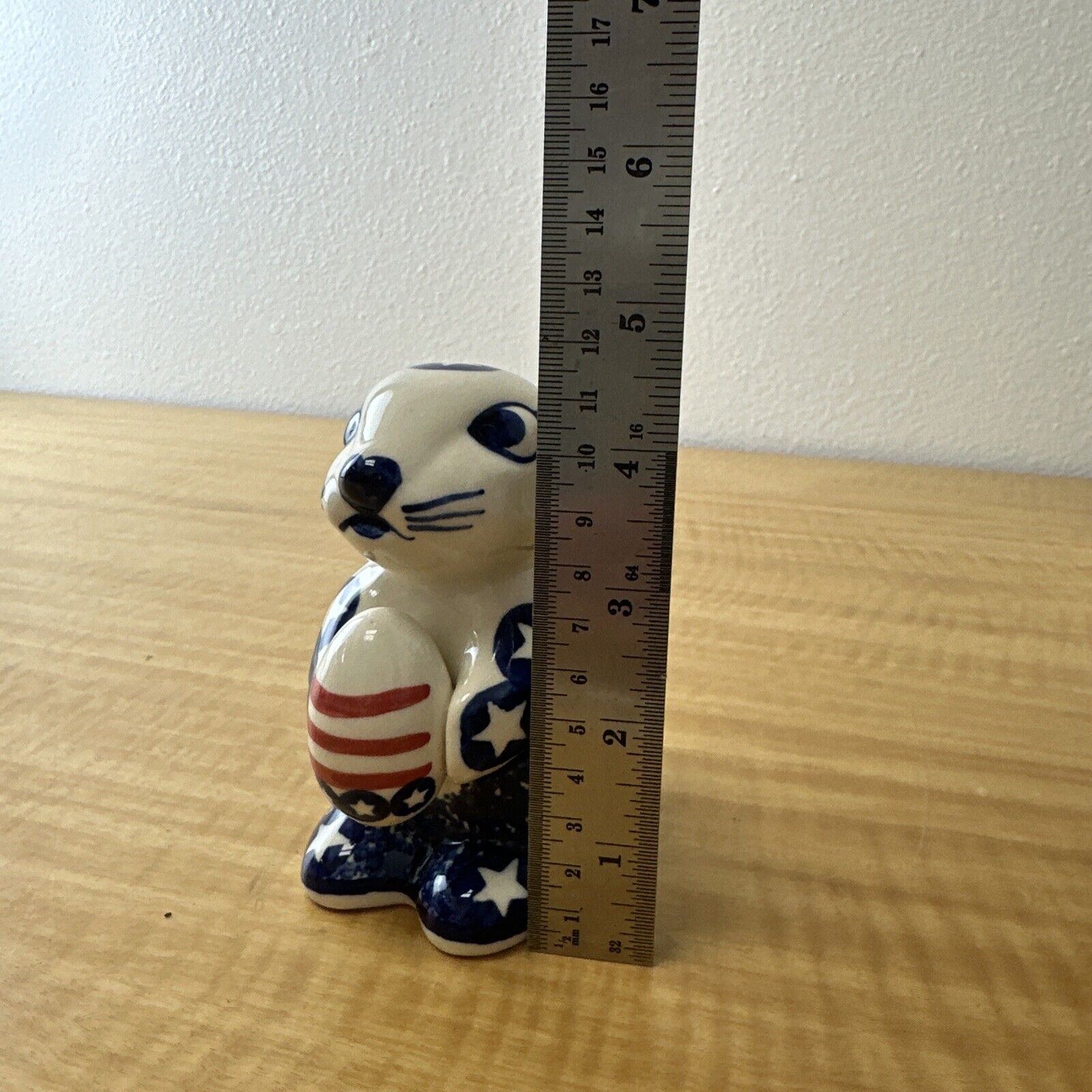 Boleslawiec Polish Blue Bunny Rabbit W/Easter Egg Star & Stripe Pattern. WIZA