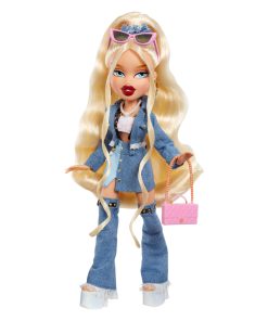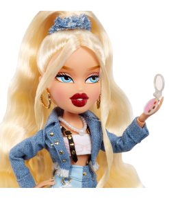 Cloe rocks denim head to toe with a denim jacket, two-toned denim skirt, and denim leg warmers over bold platform heels. Cloe accessorizes with a denim scrunchie, gold hoops, and a pearl chain. She also comes with extra accessories like hair clips, sunglasses, makeup, a phone, purse, and hairbrush! Each doll also includes an exclusive poster and has 15 points of articulation to strike so many poses! Cloe’s fashion passion changes with her mood, sometimes it’s casual cool and sometimes it’s drama. Her friends call her “Angel” because that’s what she is! Cloe rocks a high curly ponytail with 2 loose tendrils and a bold makeup look with red lips.