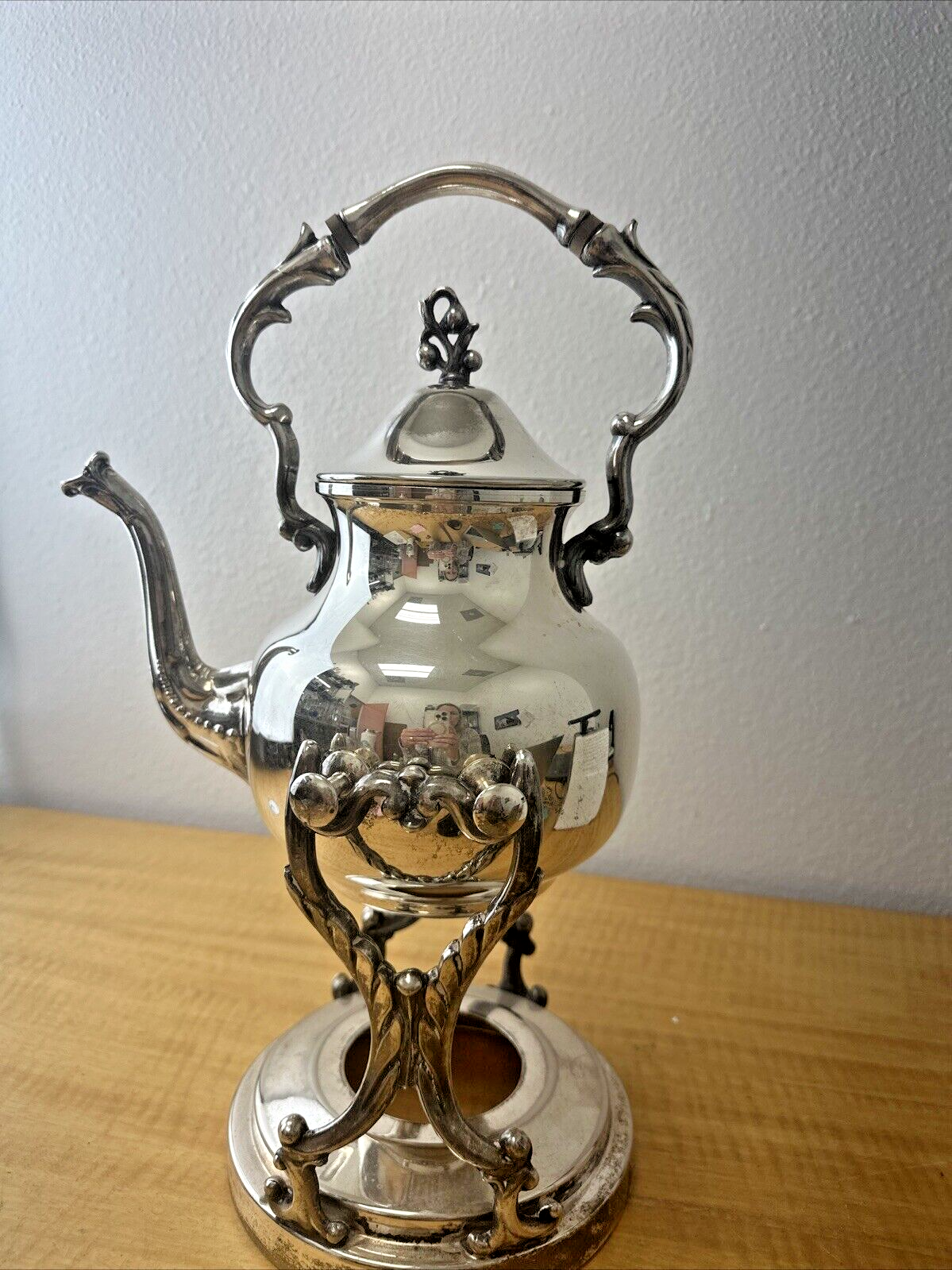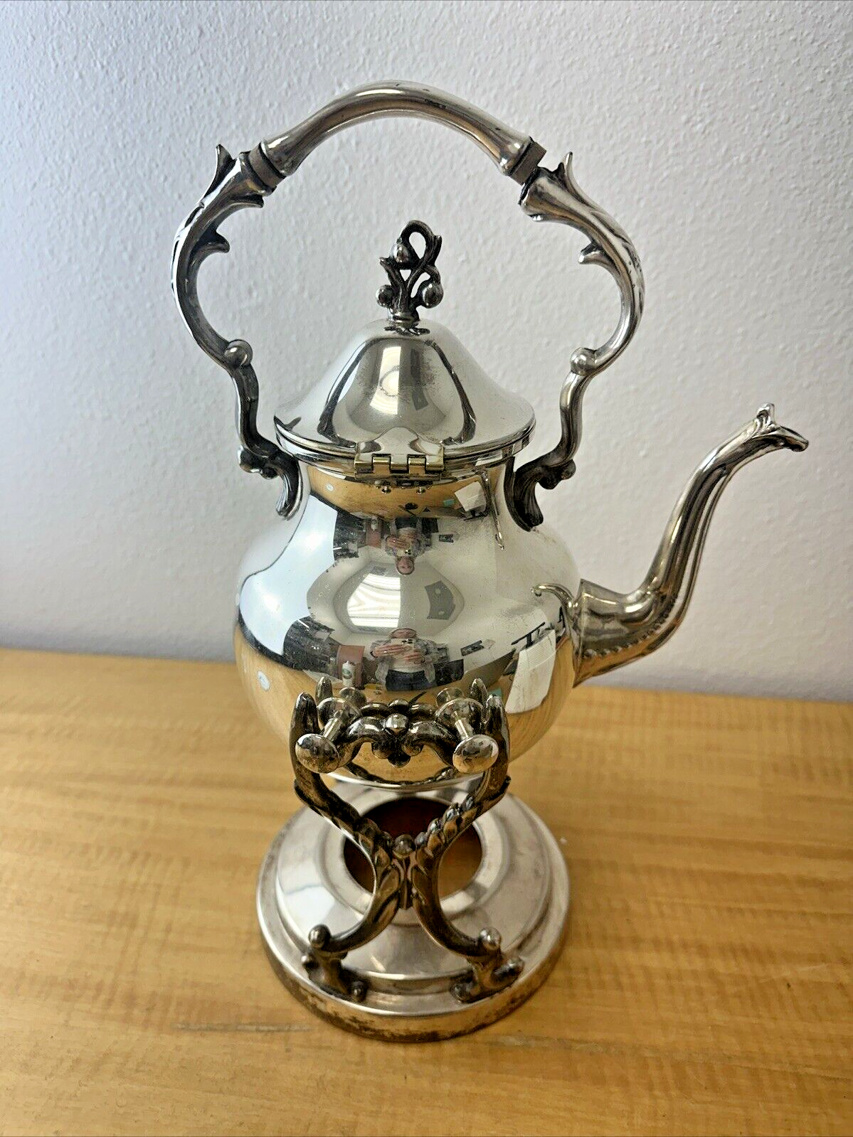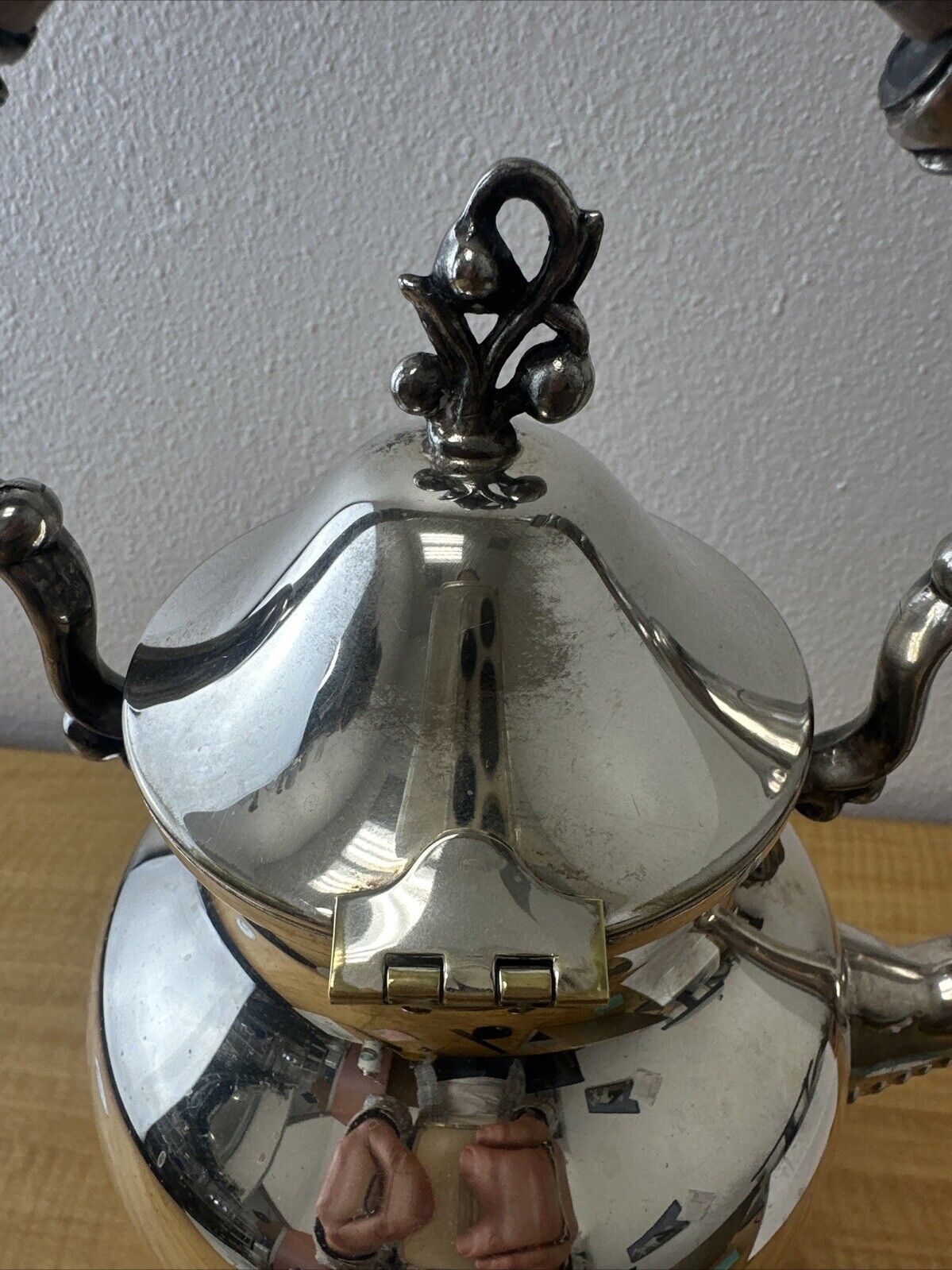 Britannia Sheridan Silver On Copper Tipping Teapot Tea Kettle Tilting Stand
