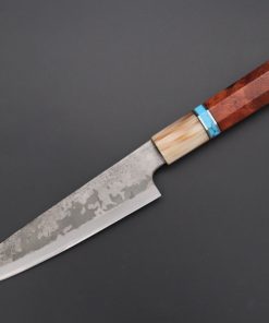 Sukenari’s knowledge of traditional forging processes and their extensive experience with modern, high performance, steels proved to be invaluable while perfecting these new HAP-40 knives. Master Hanaki, Sukenari’s innovative and energetic knife maker and Master forge-smith, has successfully managed to extract the best cutting performance and edge retention from these HAP-40 knives (HRc. 68). They are perfect for customers who love testing exotic hi-tech steels, or those who appreciate knives with outstanding cutting performance and edge retention.