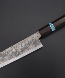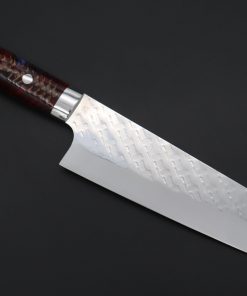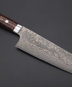 The blade is made with a VG-10 core forged Nickel Damascus Stainless steel (HRc. 62) and features a traditional Japanese Hamaguri-Ba (Convex) blade grind that provides remarkable cutting performance.