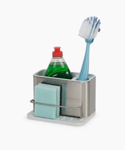 This kitchen sink caddy offers plenty of space to store your washing-up liquid bottle and brush, plus the rail also allows you to hang and dry damp dishcloths.
