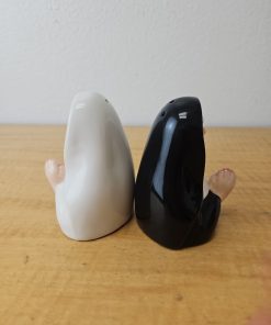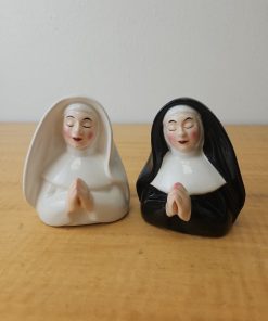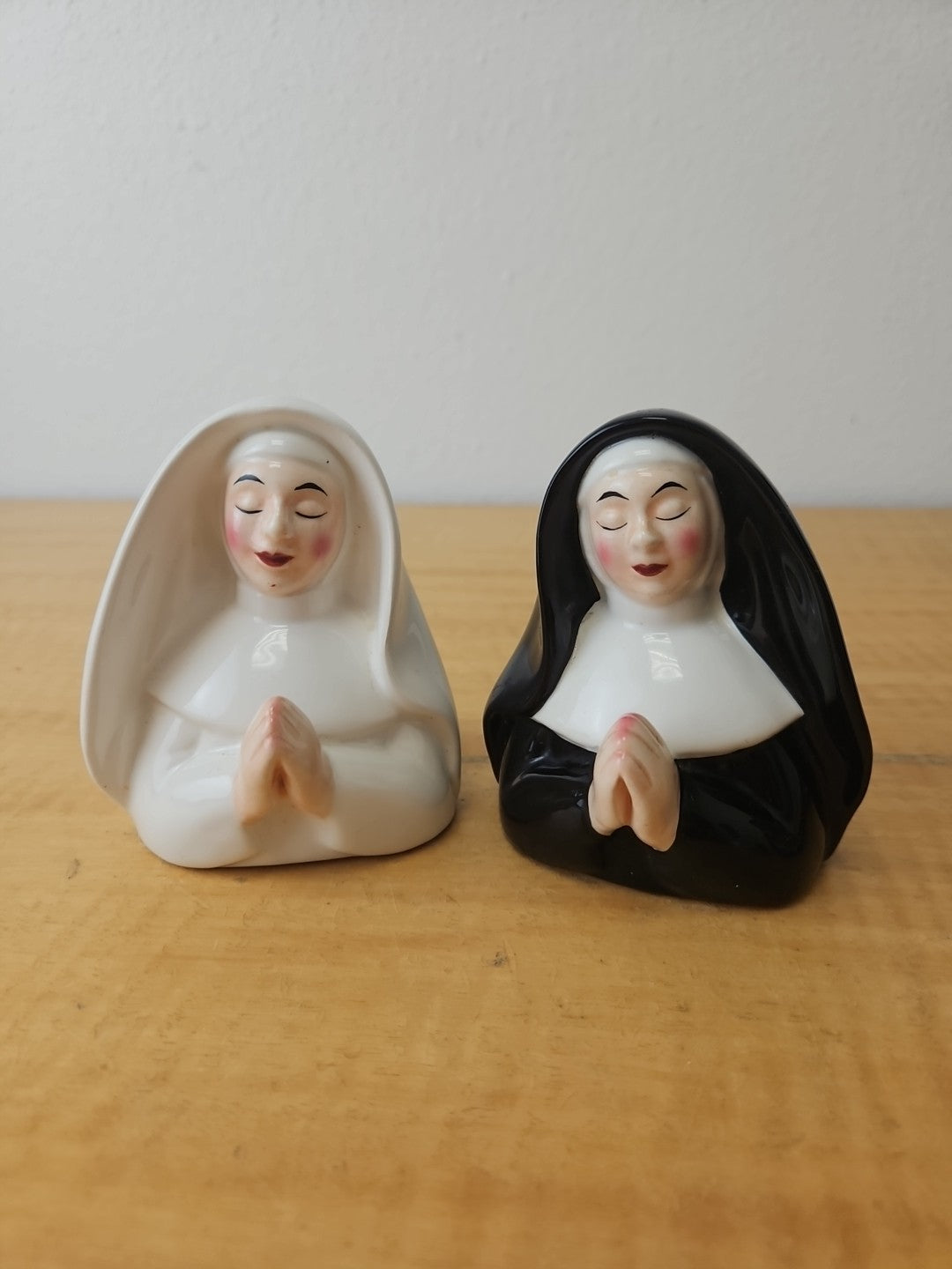 Clay Art Praying Catholic Nuns Salt & Pepper Shaker Set Ceramic black and white