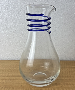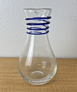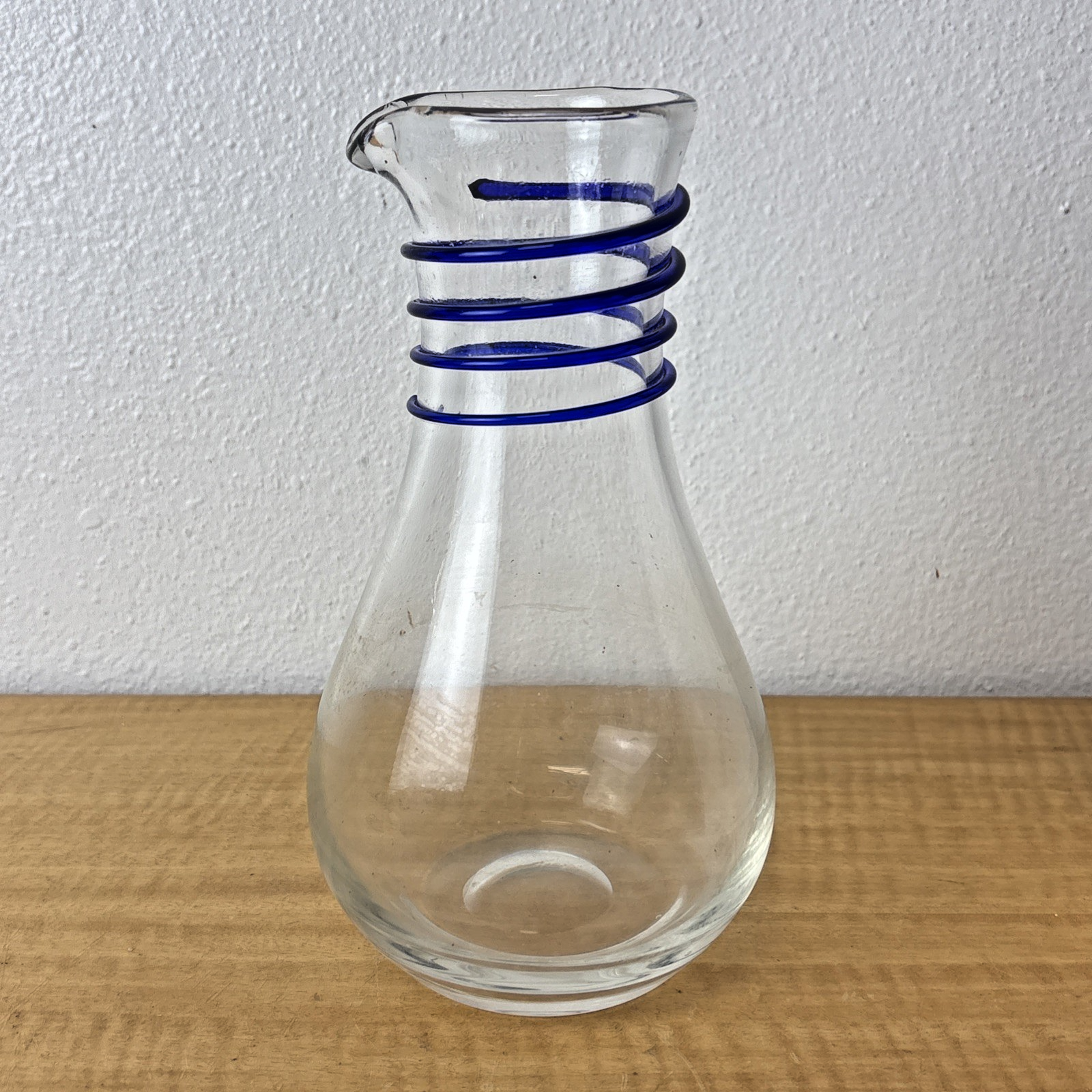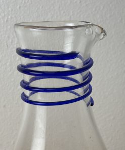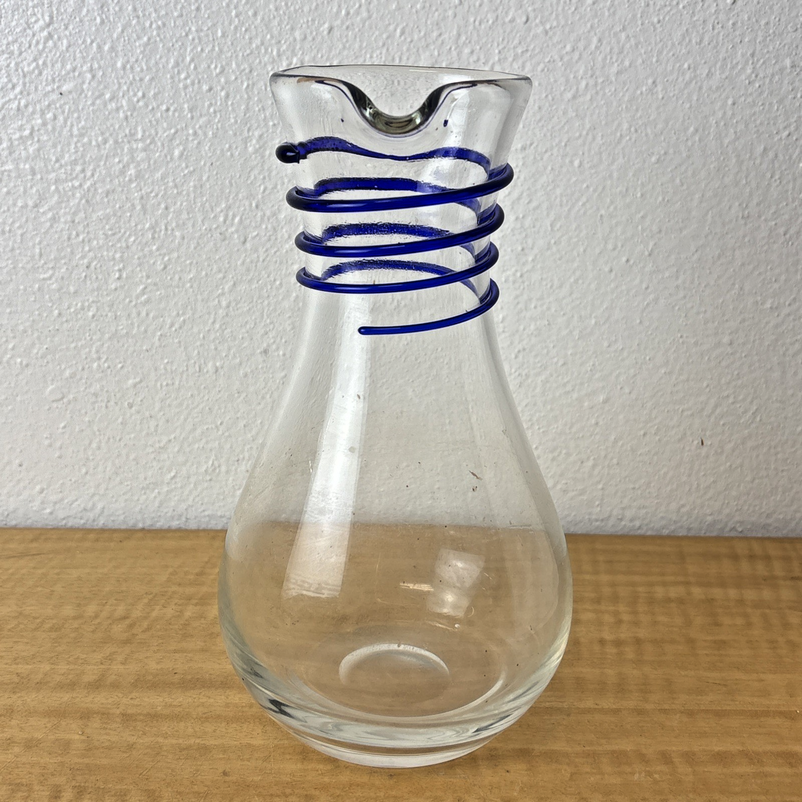 Clear Glass Carafe Decanter with Colbalt Blue Applied Ribbon Stripe Art Glass