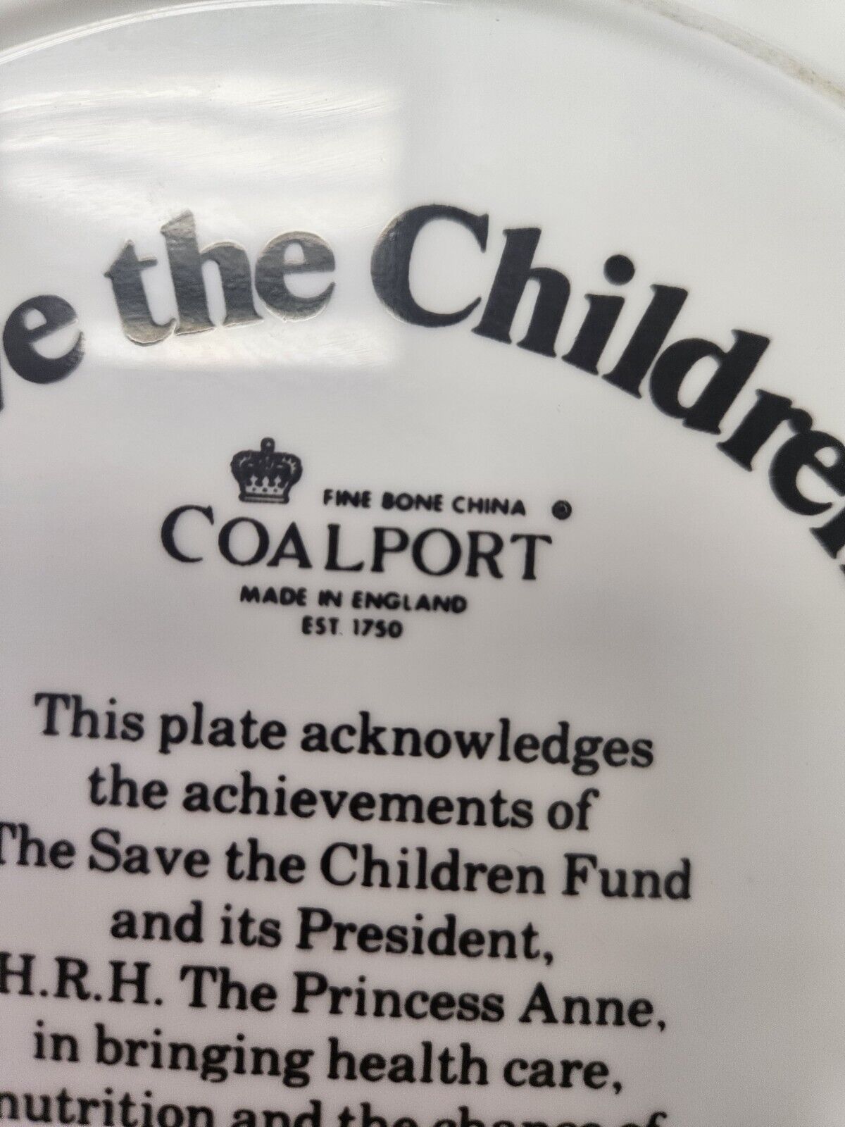 COALPORT COLLECTORS 9″ PLATE “SAVE THE CHILDREN” H.R.H. THE PRINCESS ANNE