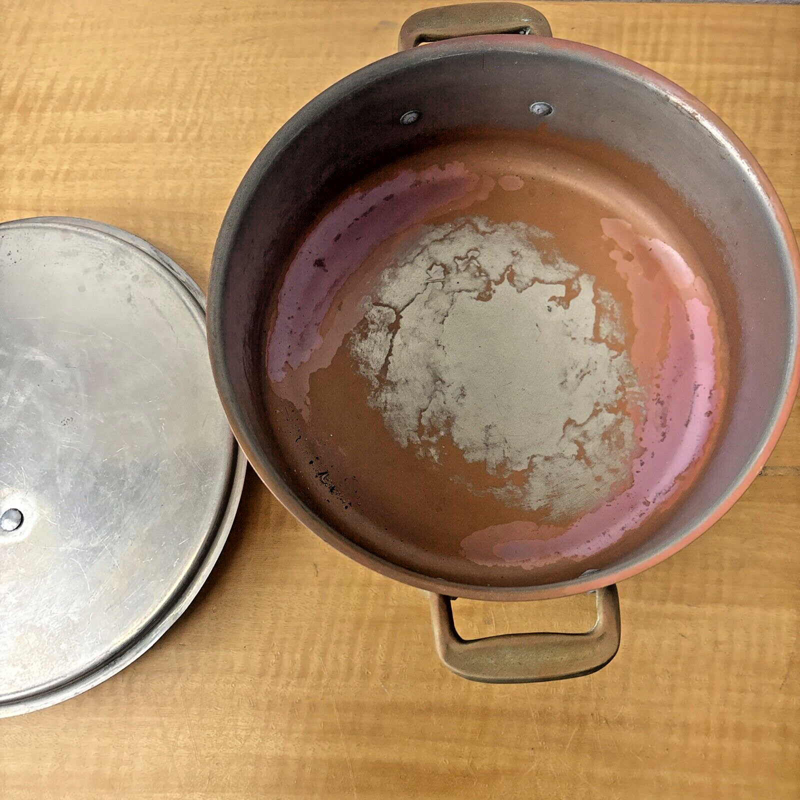 Copper Pot with Lid, Used and Old Vintage Looking