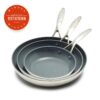 Designed to enhance your cooking experience, this frypan trio features innovative technology, ultra-strong bodies, and our signature Thermolon ceramic nonstick. Plus, the gorgeous gold-tone handles are both dazzling and durable.