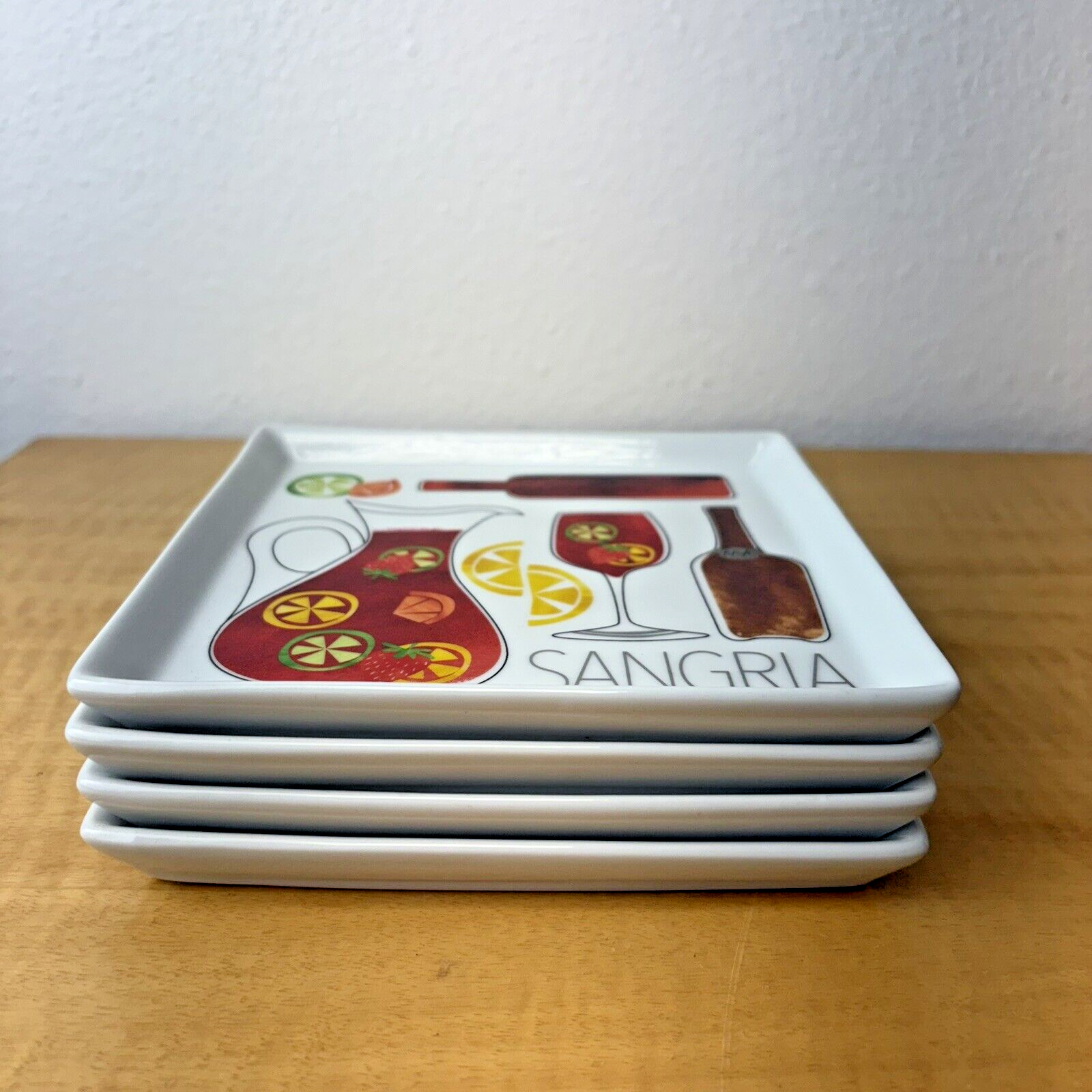 Crate and Barrel Cocktail Plates Drink Recipes on Back Set of 4