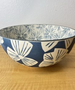 Crate & Barrel Mai Collection Blue Floral Ceramic Bowl Large 9.5″