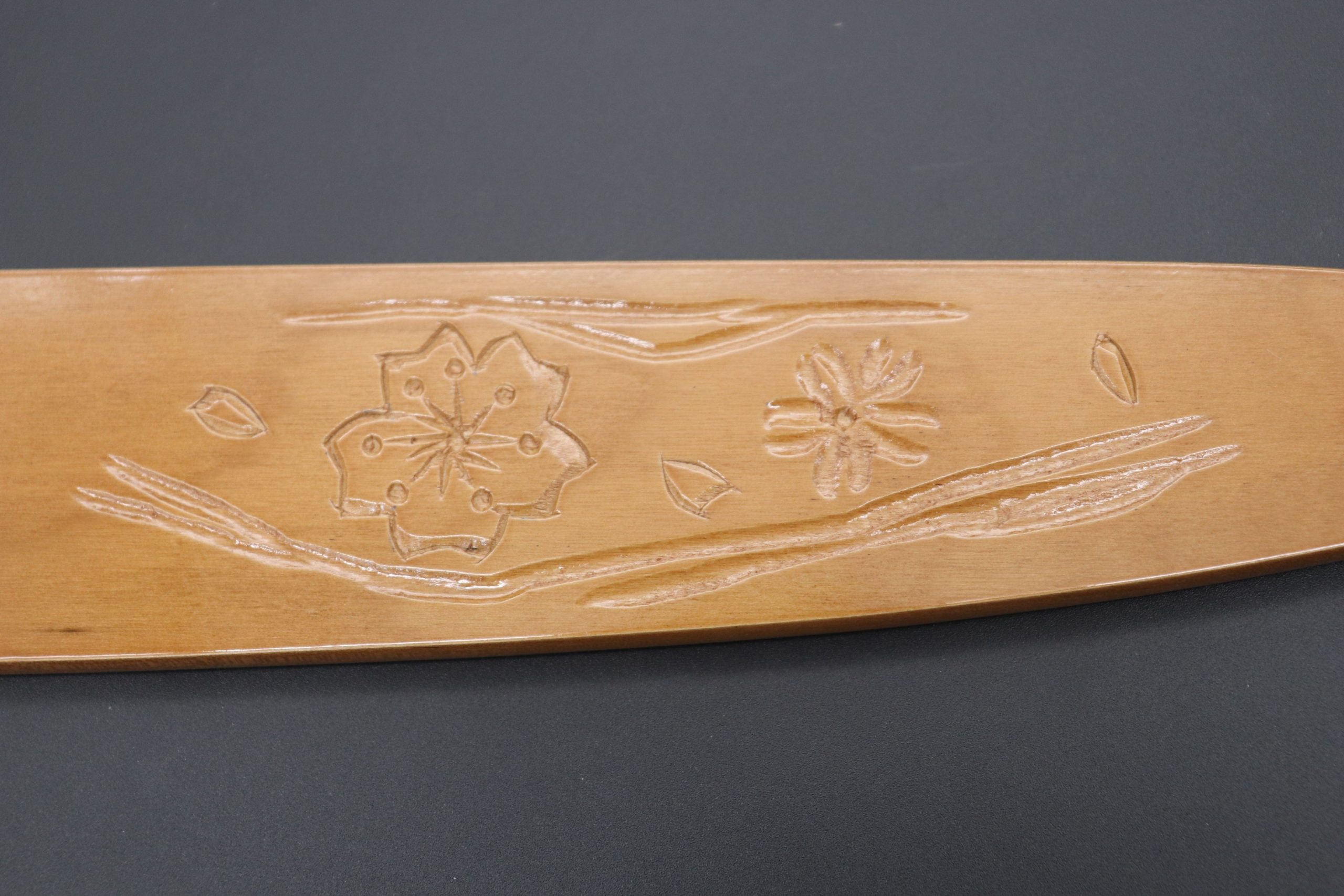Each Special Edition Wooden Saya has been custom hand carved with a design motif inspired by Japan’s beautiful scenery, nature or culture. This one, is the “Sakura Special Edition Hand Carved Saya”.
