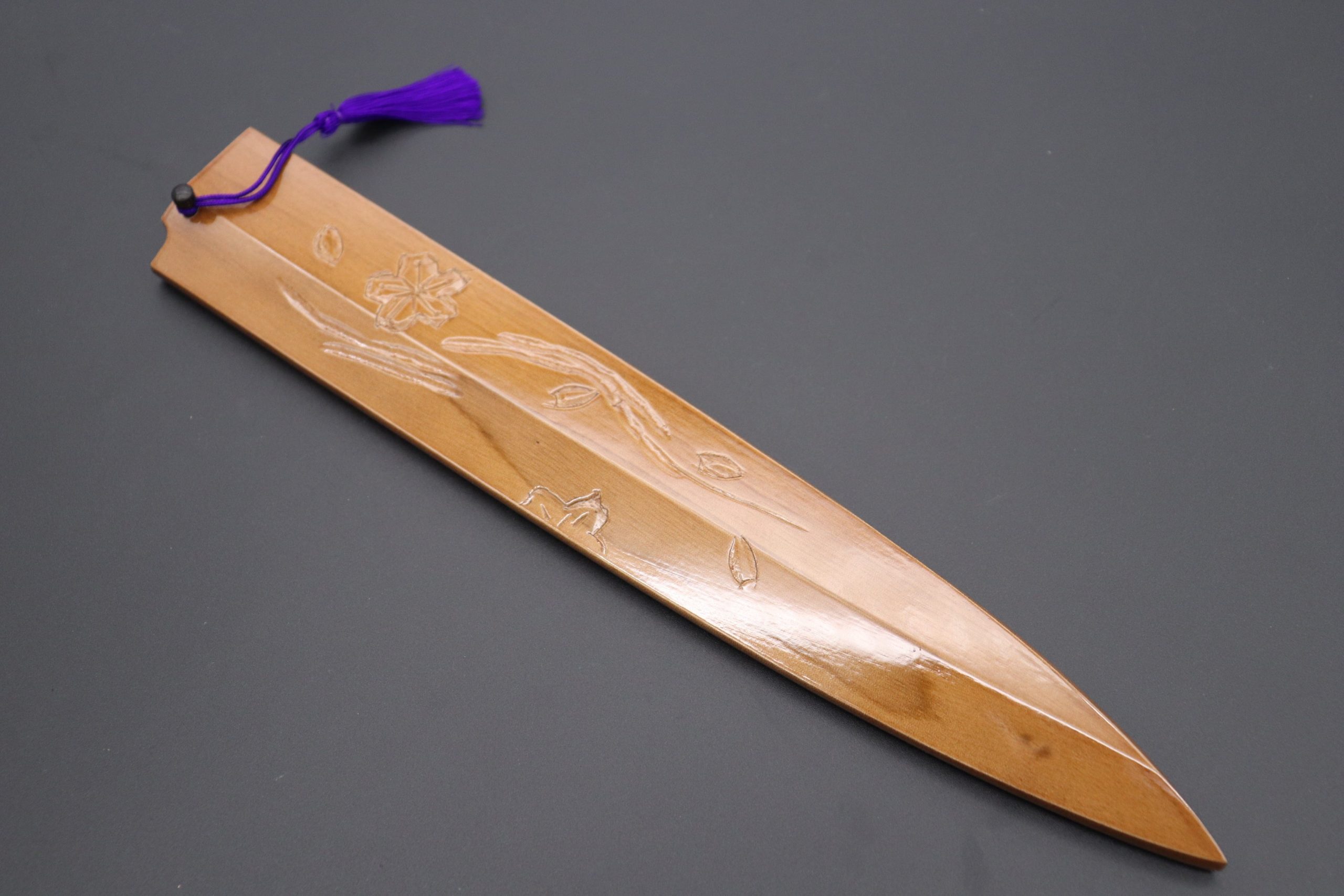 Each Special Edition Wooden Saya has been custom hand carved with a design motif inspired by Japan’s beautiful scenery, nature or culture. This one, is the “Sakura Special Edition Hand Carved Saya”.