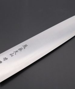 The Kirisuke-Gyuto has a very similar blade profile to the ‘regular’ Gyuto, but it has what is commonly known as a ‘reverse tanto’ tip, or ‘clipped point’, which is very useful for precision cutting. Apart from this difference, the Kirisuke-Gyuto functions in the same way as the ‘plain’ Gyuto knife.