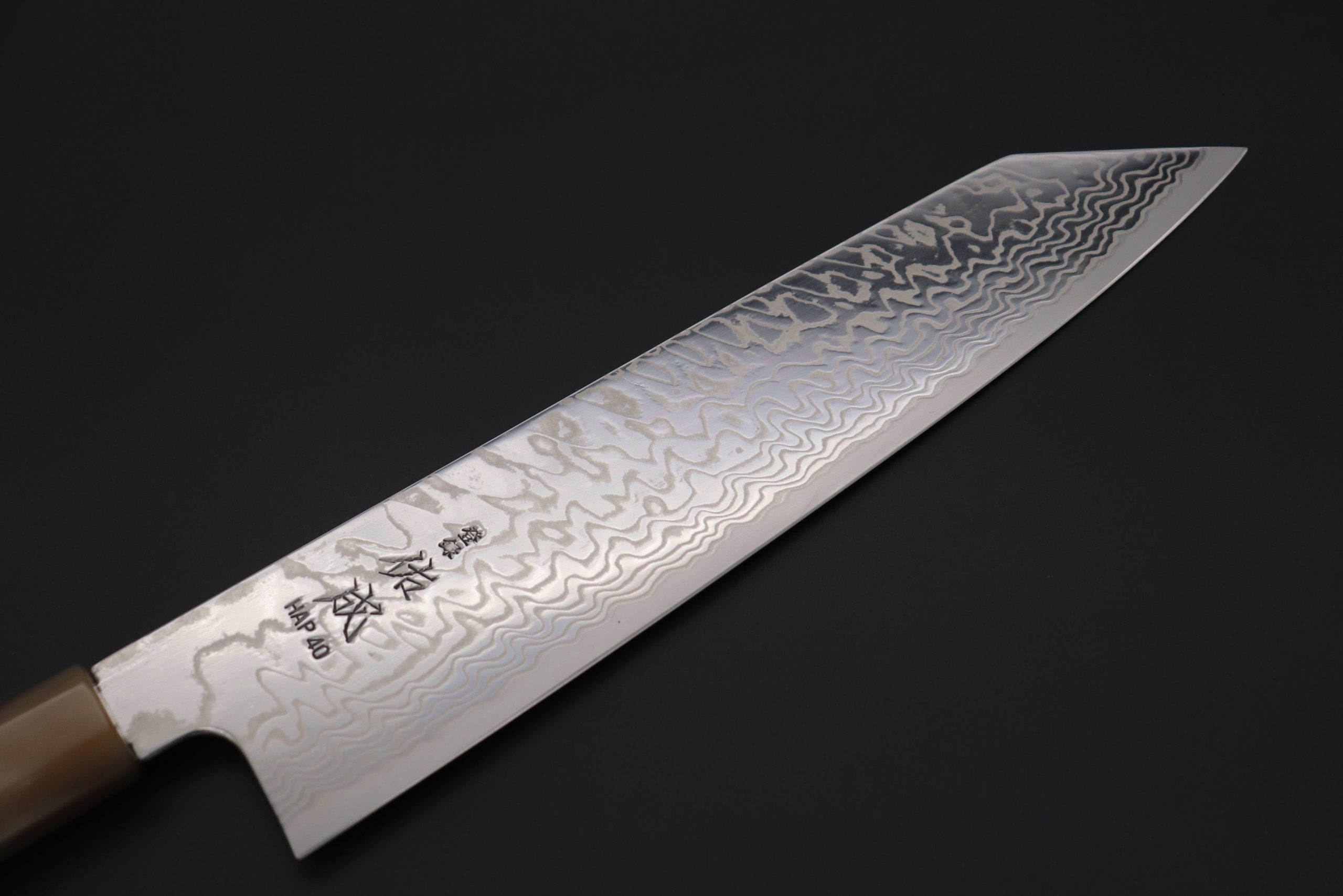 Sukenari’s knowledge of traditional forging processes and their extensive experience with modern, high performance, steels proved to be invaluable while perfecting these new HAP-40 knives. Master Hanaki, Sukenari’s innovative and energetic knife maker and Master forge-smith, has successfully managed to extract the best cutting performance and edge retention from these HAP-40 knives (HRc. 68). They are perfect for customers who love testing exotic hi-tech steels, or those who appreciate knives with outstanding cutting performance and edge retention.