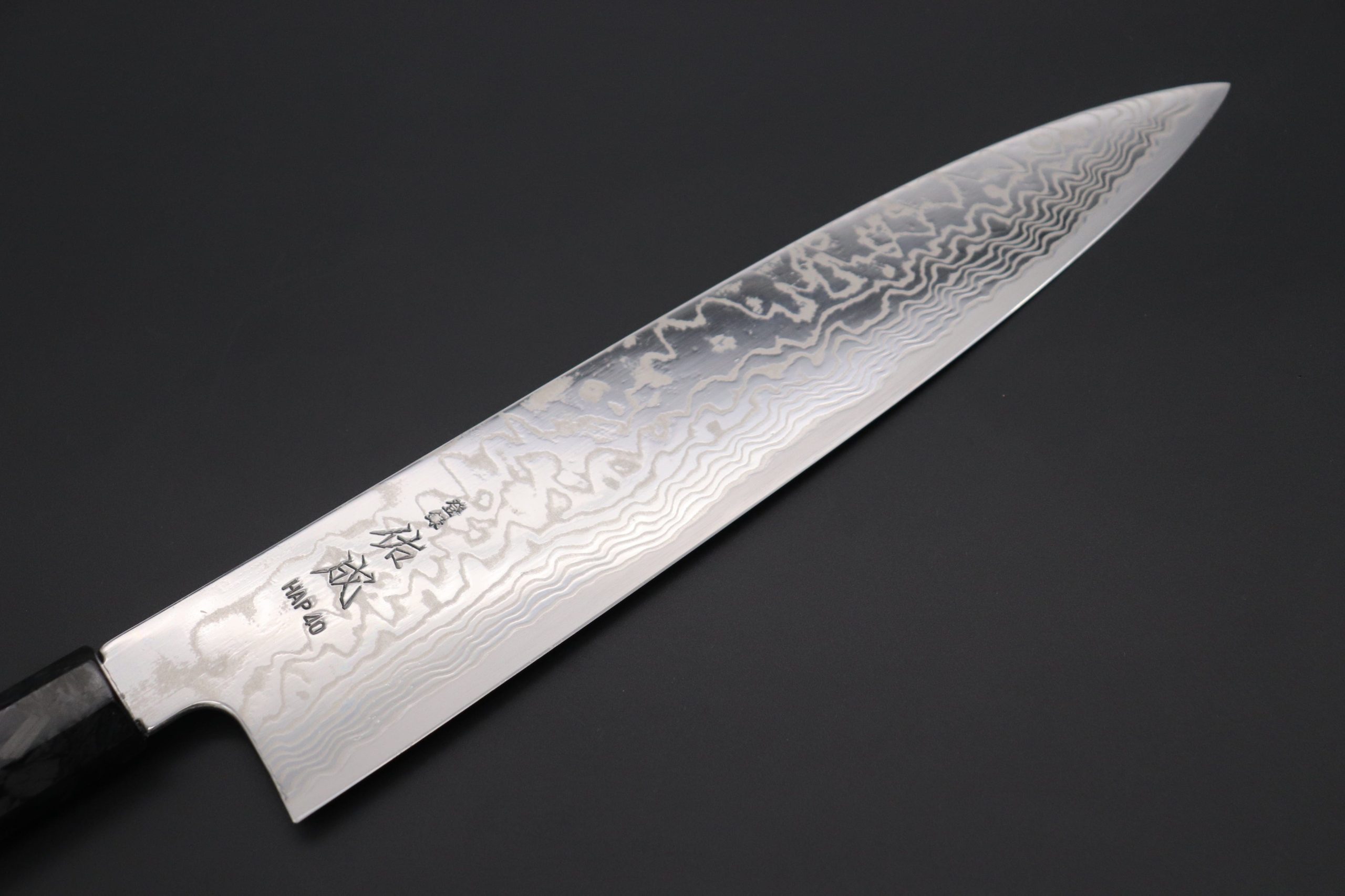 Hitachi HAP-40 is currently one of the most mysterious and attractive steels produced in Japan. This hi-tech powdered metal steel alloy has a very rich chemical position and, when it is forged and heat-treated properly, we believe that it probably offers better cutting performance and edge retention than any other high-quality Japanese steel.