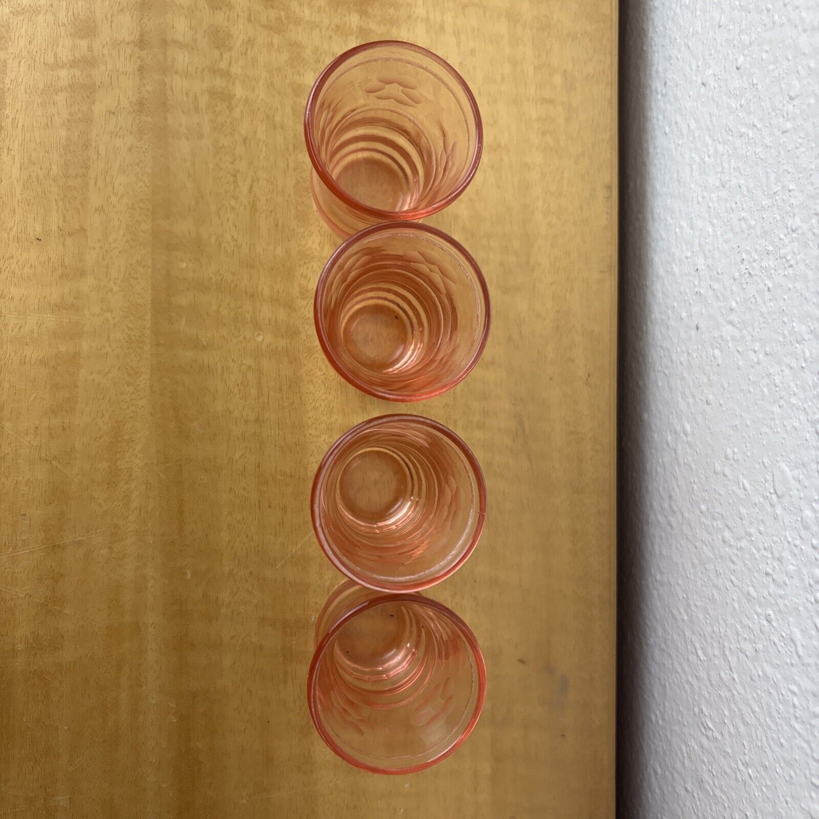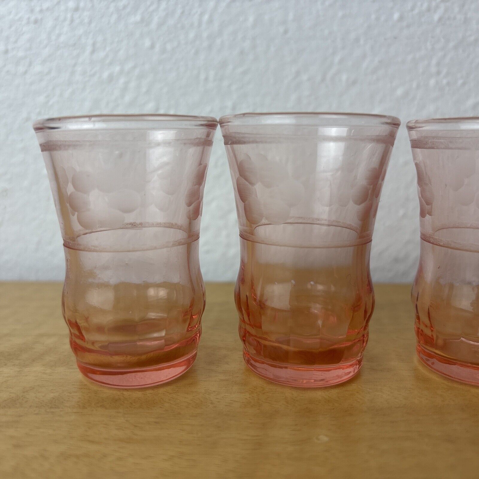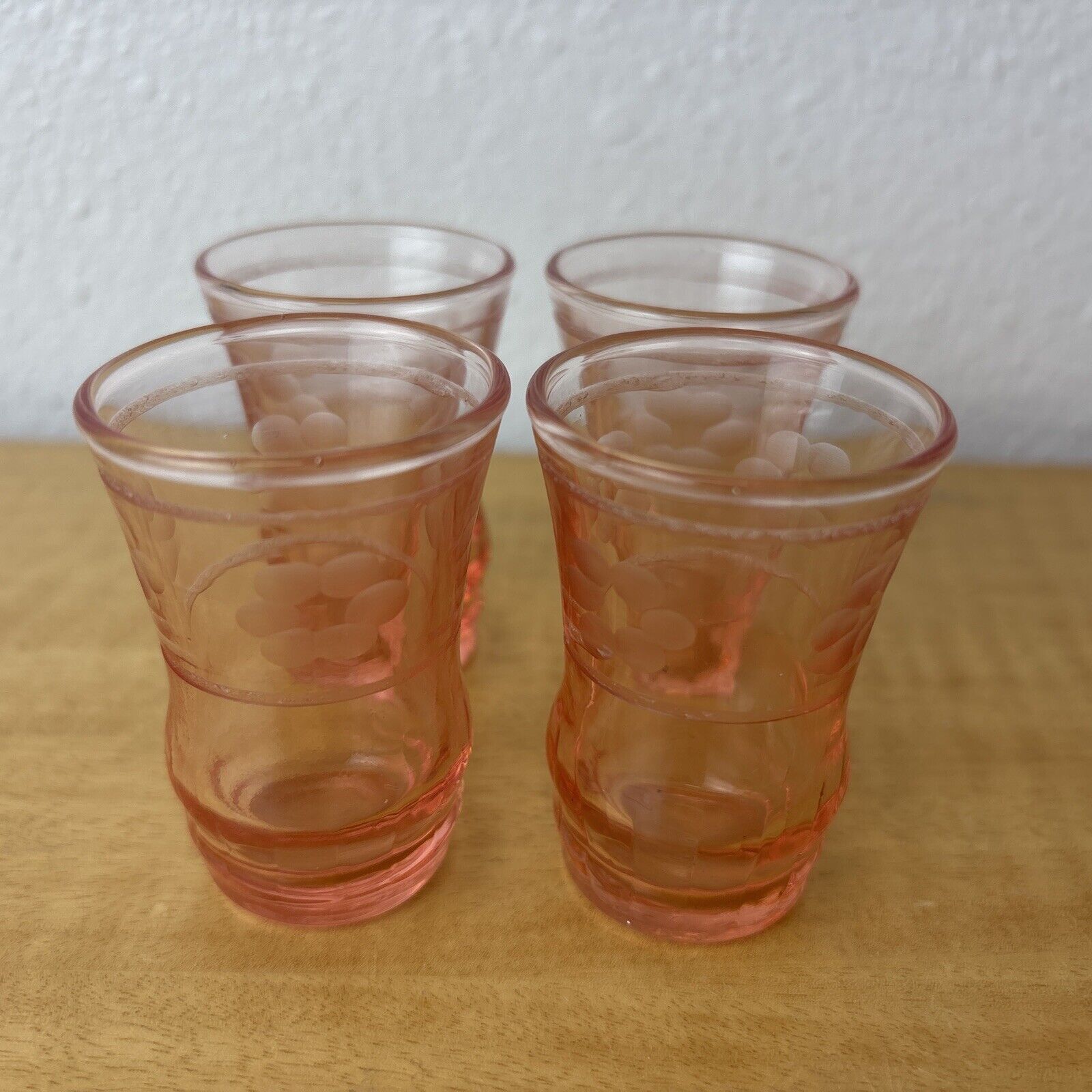 Depression Shot Glasses Set of 4 1930s Pink Vintage Etched Glass