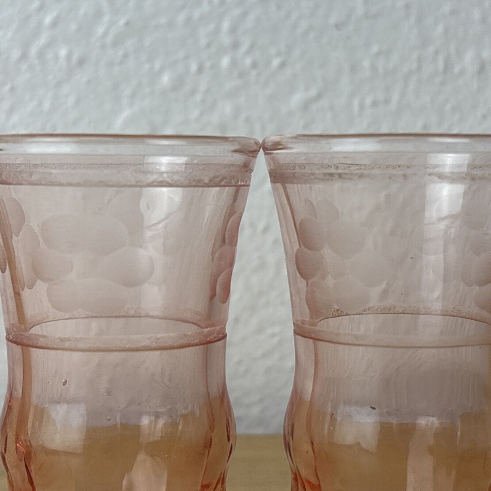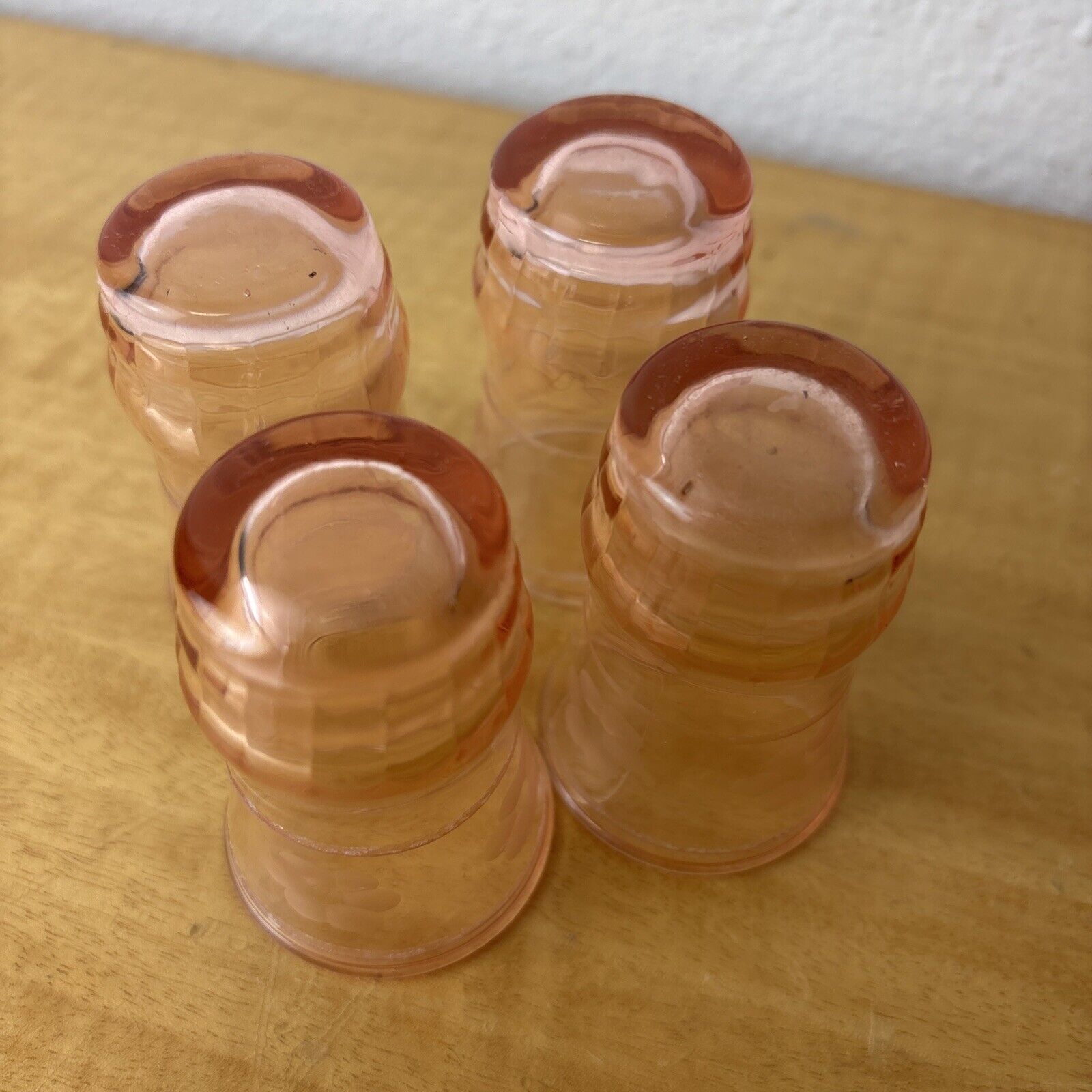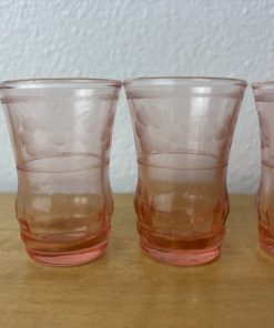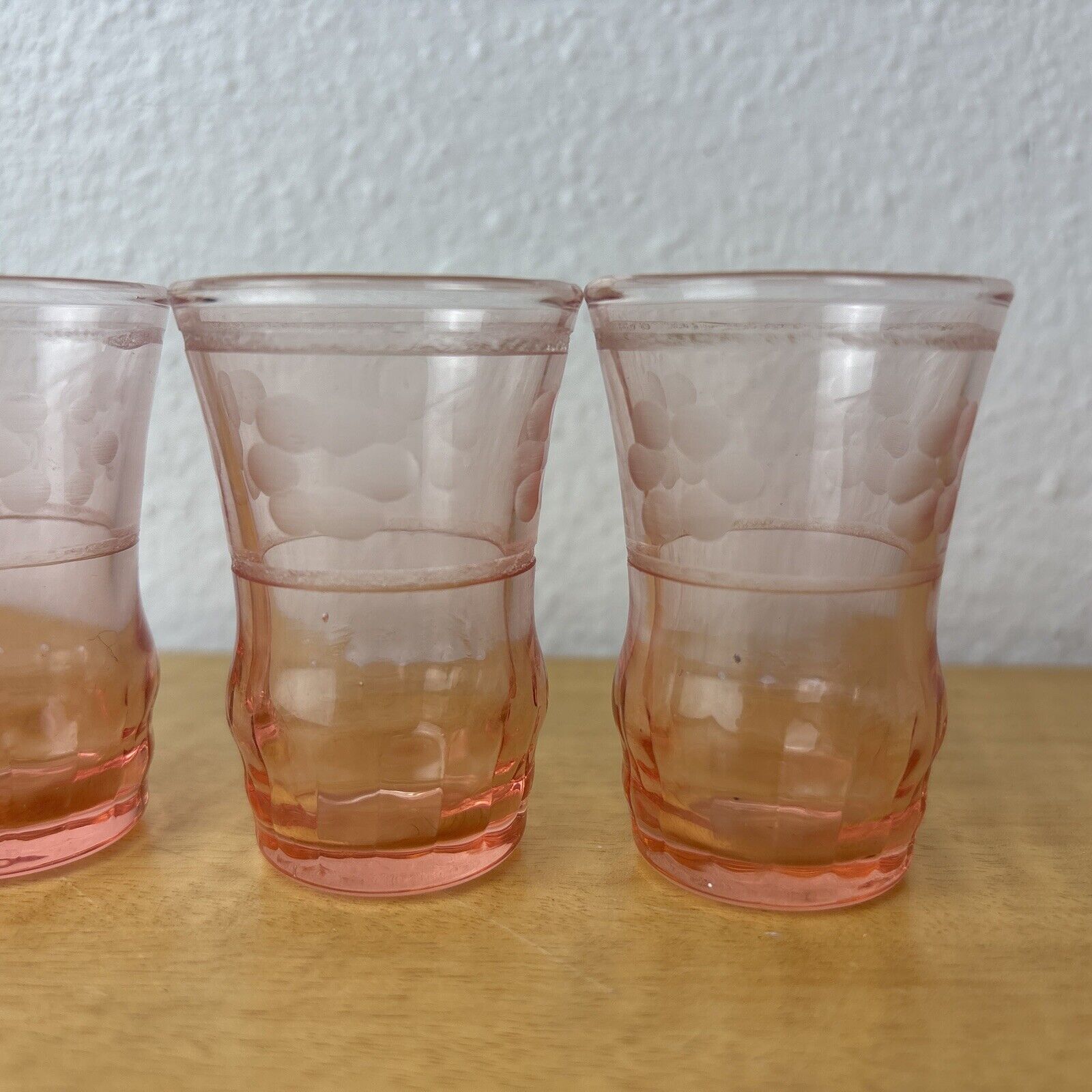 Depression Shot Glasses Set of 4 1930s Pink Vintage Etched Glass