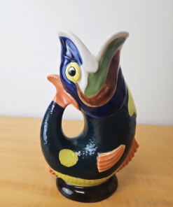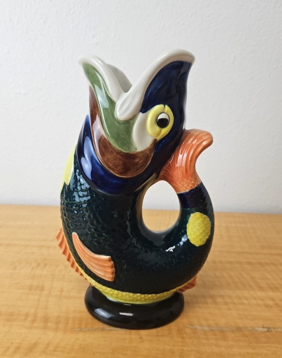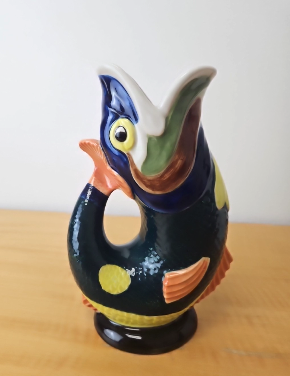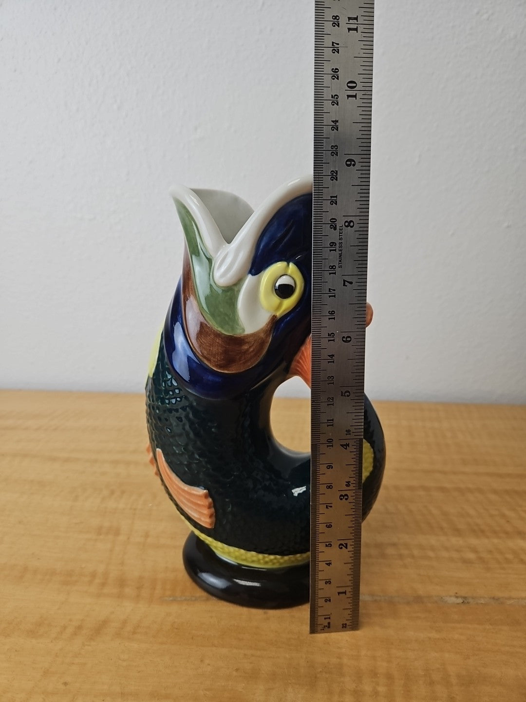 Devon Dartmouth England Pottery Colorful Gurgling Fish Pitcher 9″