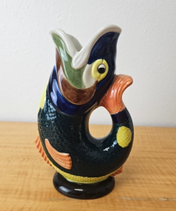 Devon Dartmouth England Pottery Colorful Gurgling Fish Pitcher 9″