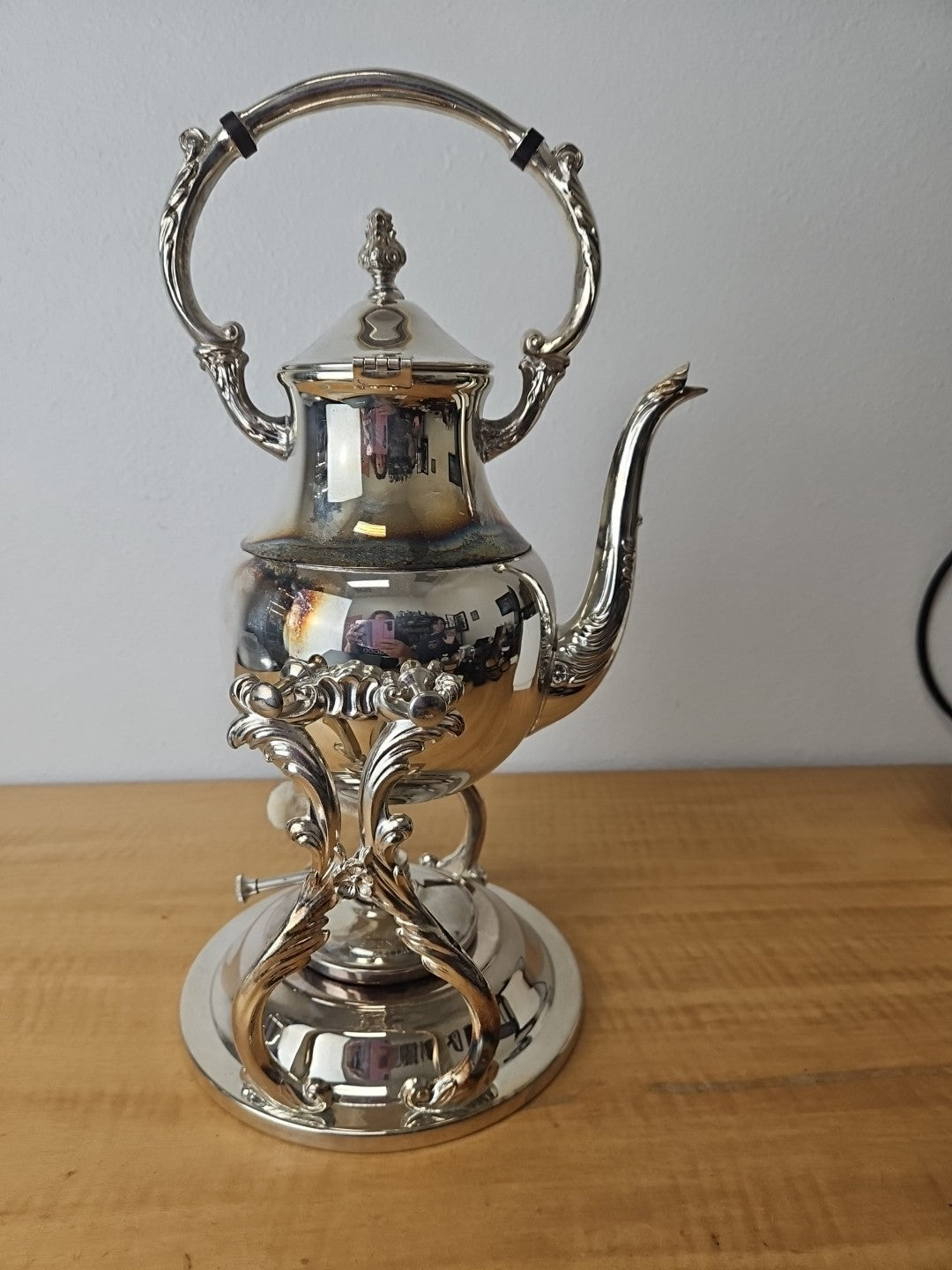 F.B. Rogers Silver Plated Tilting Coffee/Tea Pot; Kettle, Stand & Burner