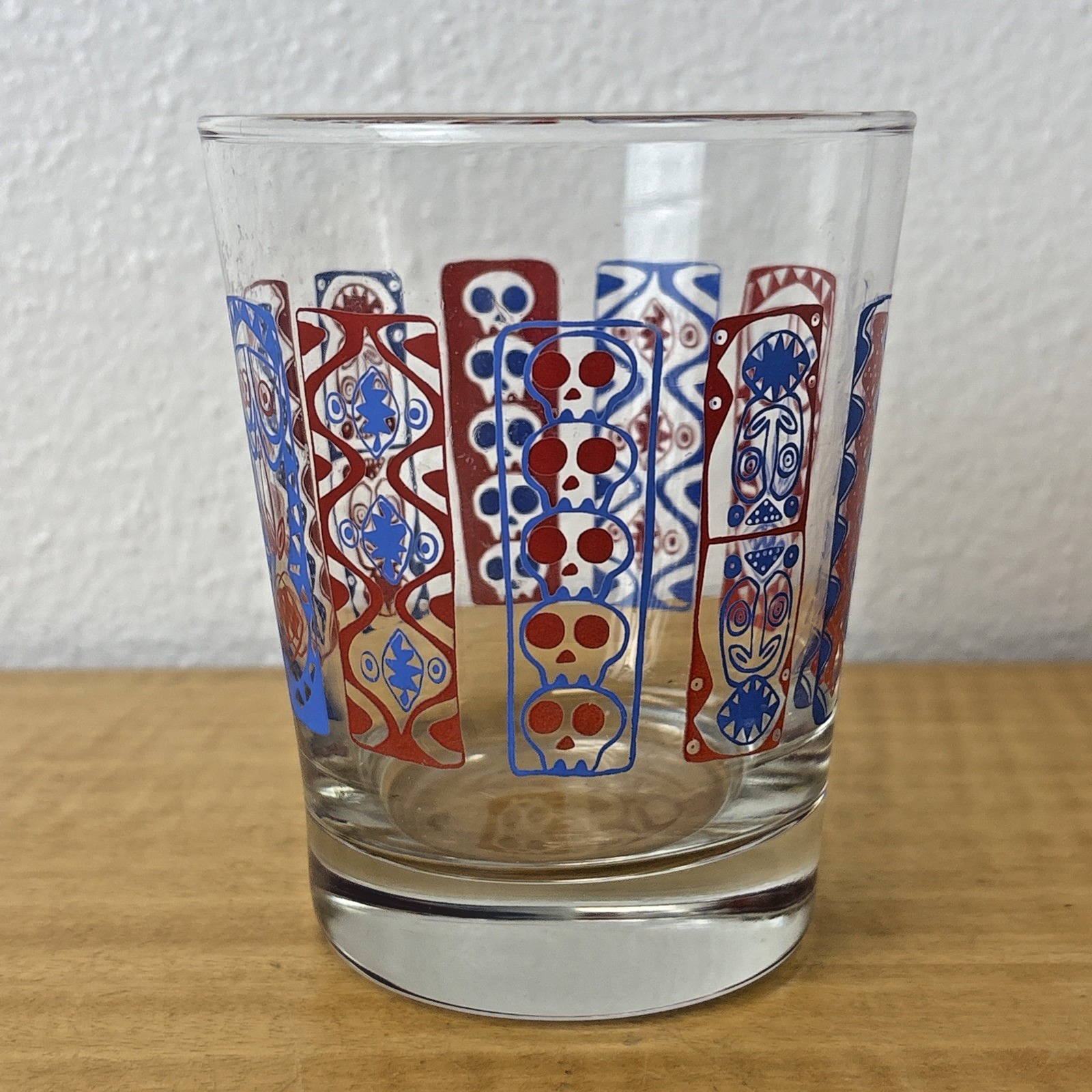 False Idol Mai Tai Glass Bosko Tiki Barware Red & Blue Skulls San Diego , CA