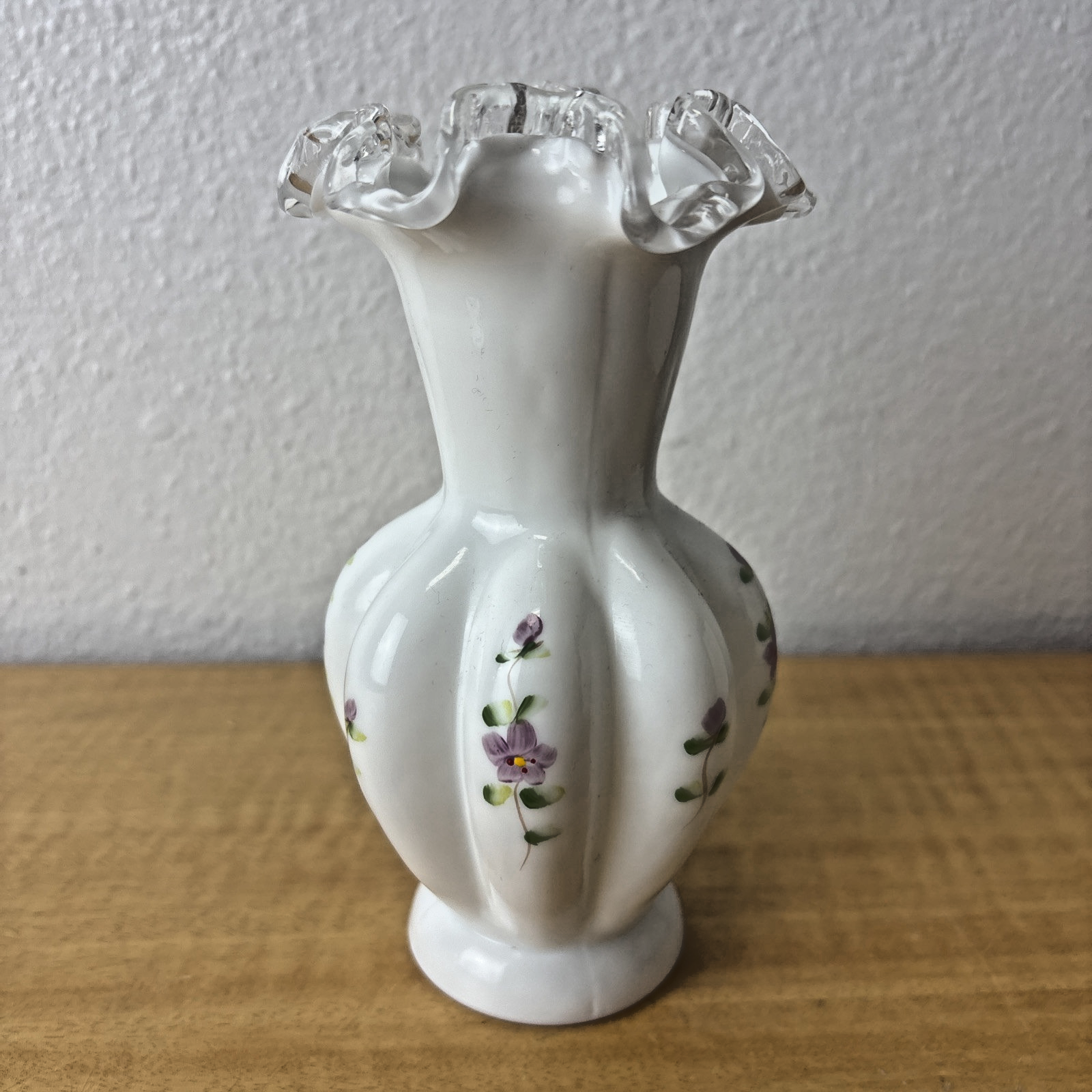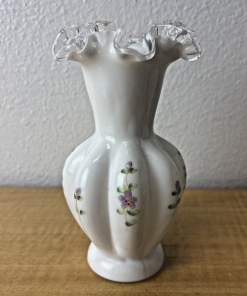 Fenton Violets In The Snow Silver Crest 6″ Vase