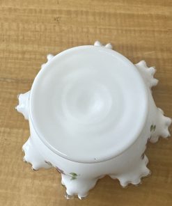 Fenton ‘Violets in the Snow’ White Milk Glass Silver Crest Footed Candy Dish