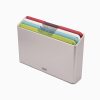 - Set of 4 food-specific, non-slip chopping boards plus slimline storage case