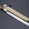 This is the special order made Fu-Rin-Ka-Zan Limited Model and available with limited quantity. Beautiful masterpiece of Blue Steel No.1 Suminagashi Sakimaru Takohiki comes with Octagon Shaped Ebony Wooden Handle and Hand Crafted Magnolia Wooden Saya.